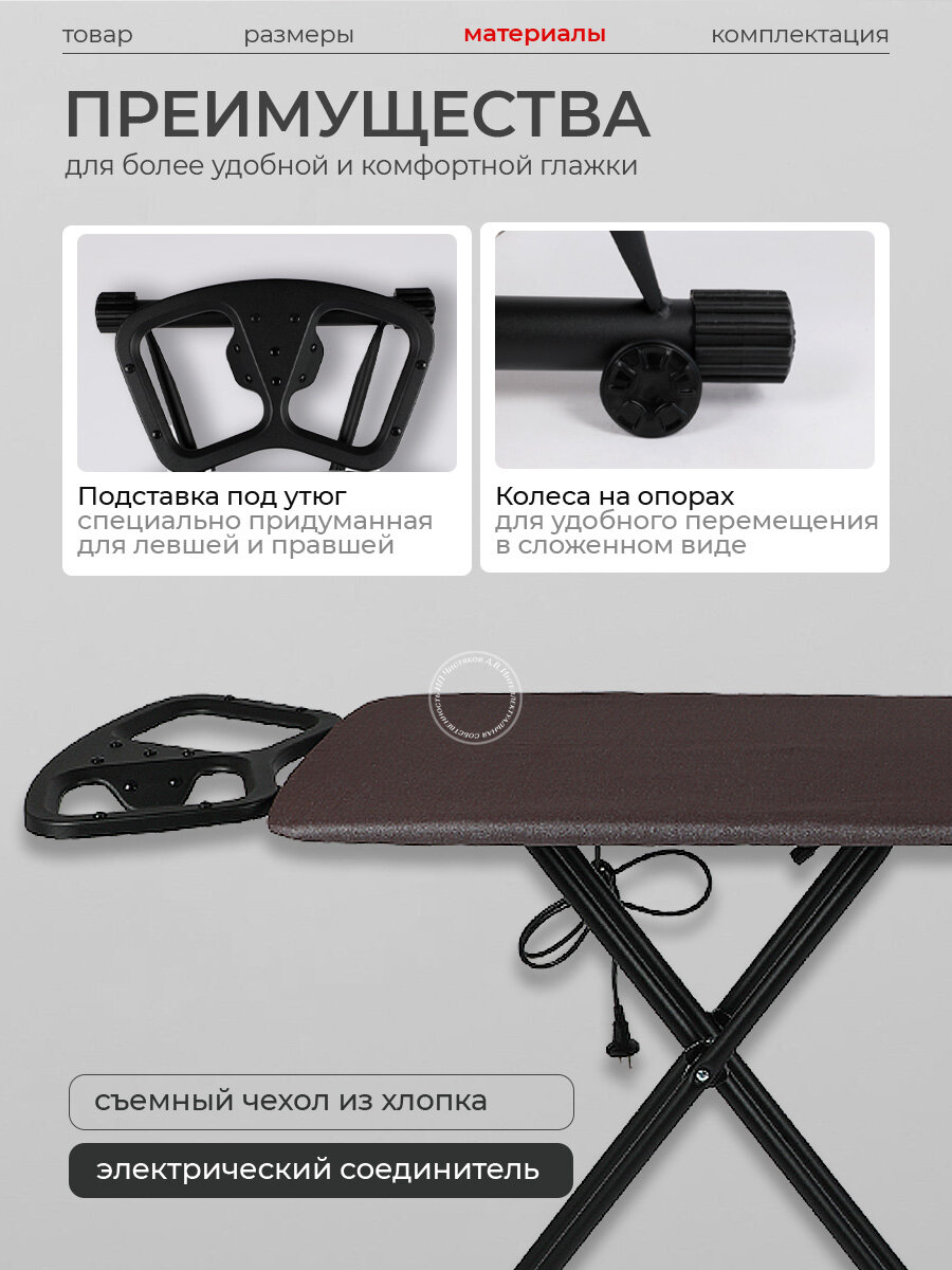 Гладильная доска Nika с розеткой, колесиками и широкой поверхностью интересное: