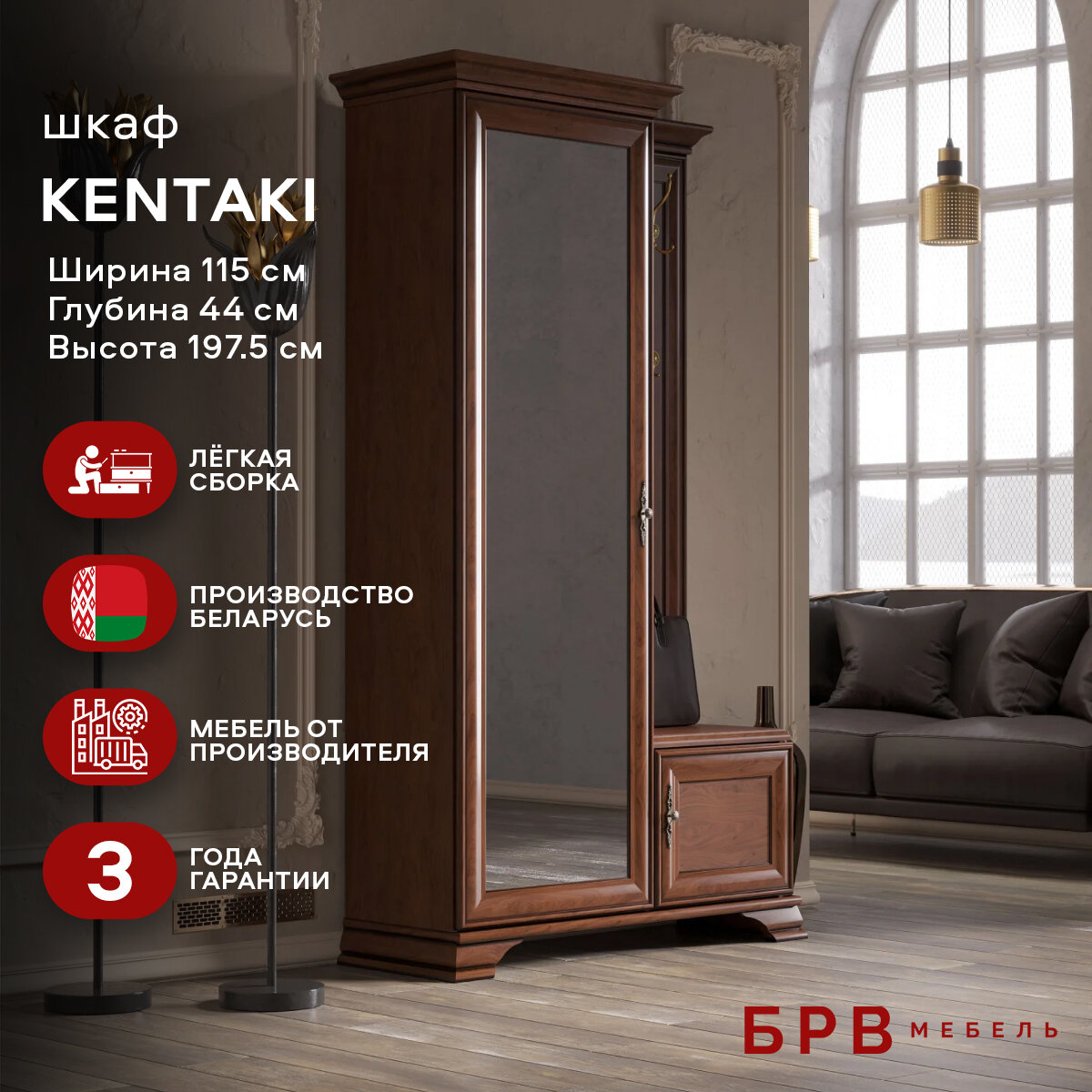 БРВ-Мебель Прихожая шкаф платянной с выдвижной штангой, вешалкой и тумбой Кентаки РРК/110L левая каштан