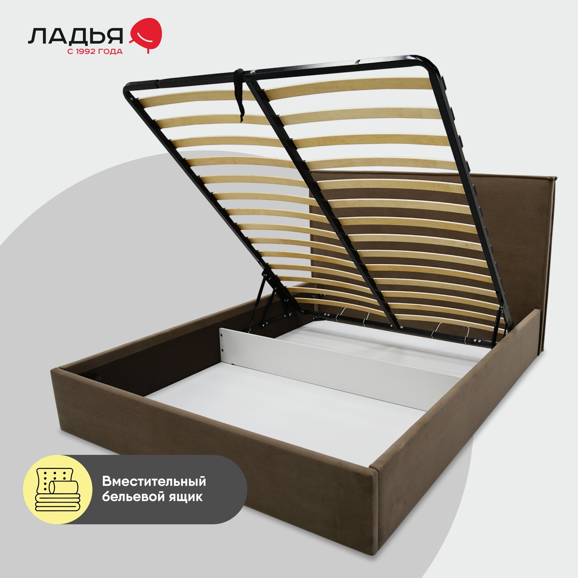| Особенности | мягкое изголовье, основание под матрас, с изножьем, с подъемным механизмом, с ящиком для белья |