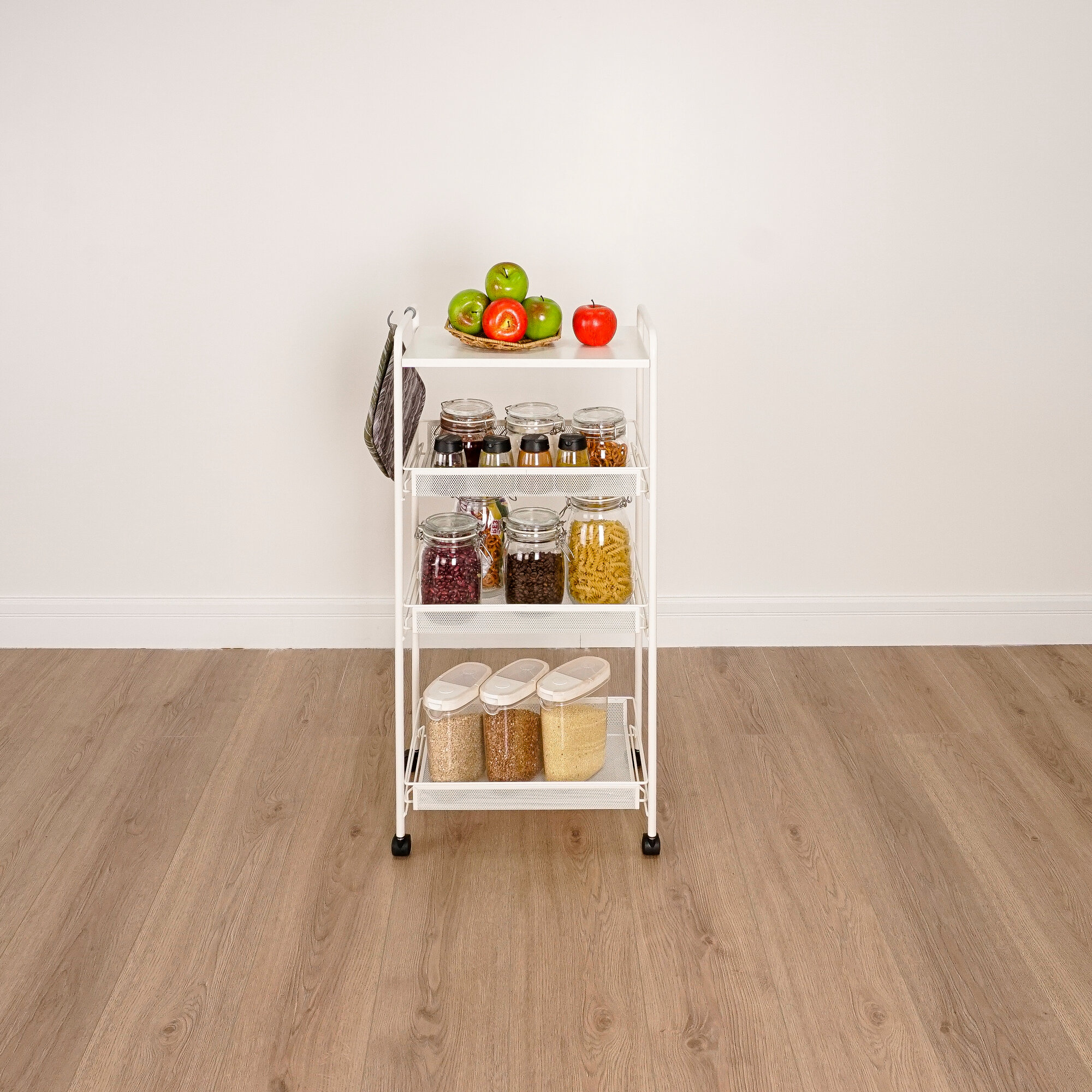 Этажерка ЗМИ Ладья 34КС для кухни на колесах со столиком напольная металлическая, белая