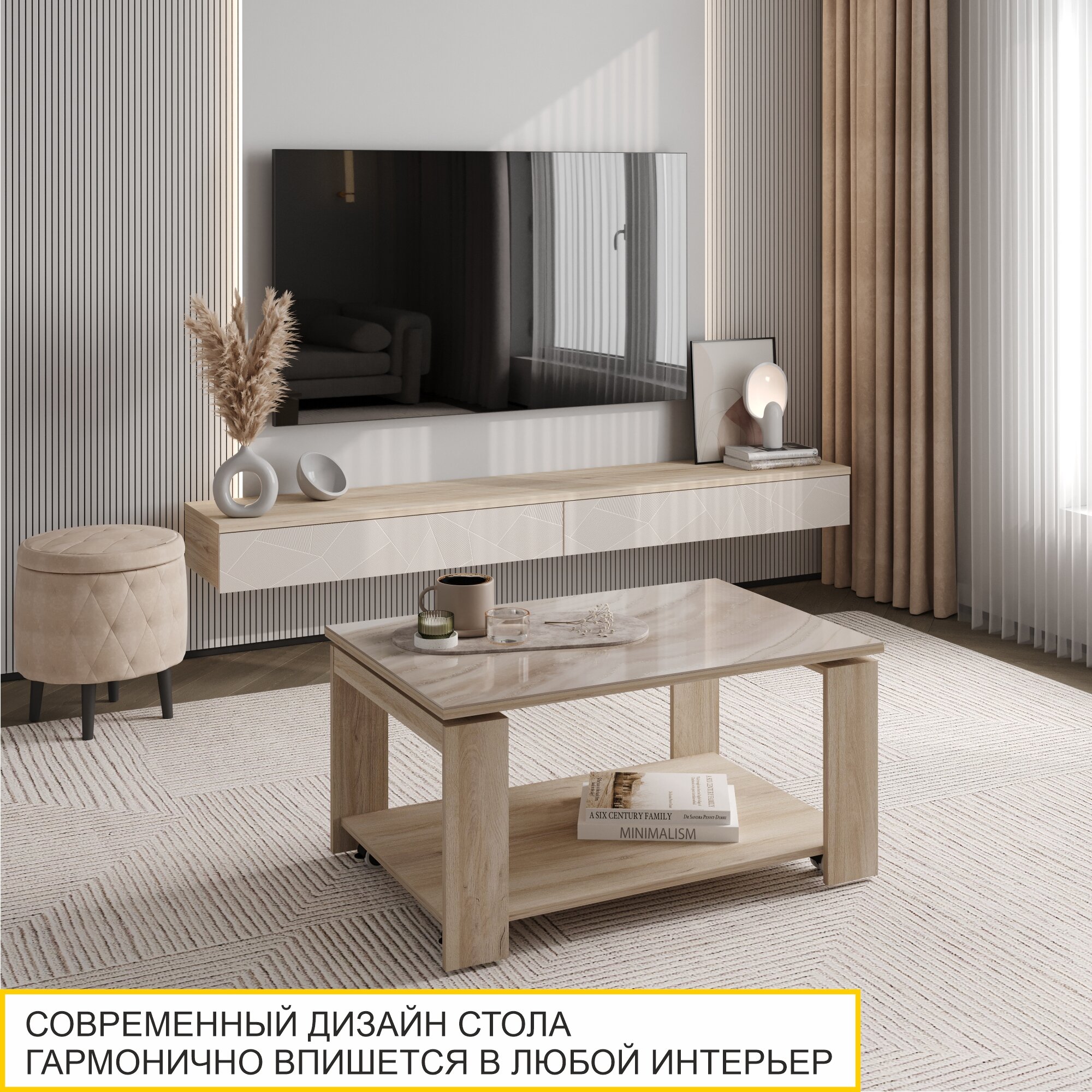 Журнальный стол Рим 22 (02) Мрамор бежевый/Дуб Кронберг, 90х60х45 см интересное:
