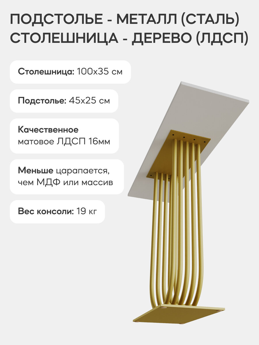 СохранитьGEN GROUP Столик консольный ARFEO золотой с белой столешницей 100х35х80 интересное: