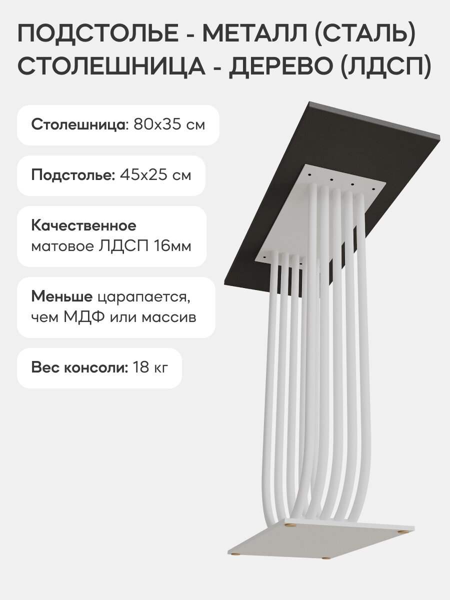 GEN GROUP Столик консольный ARFEO черный с белой столешницей 80х35х78 см