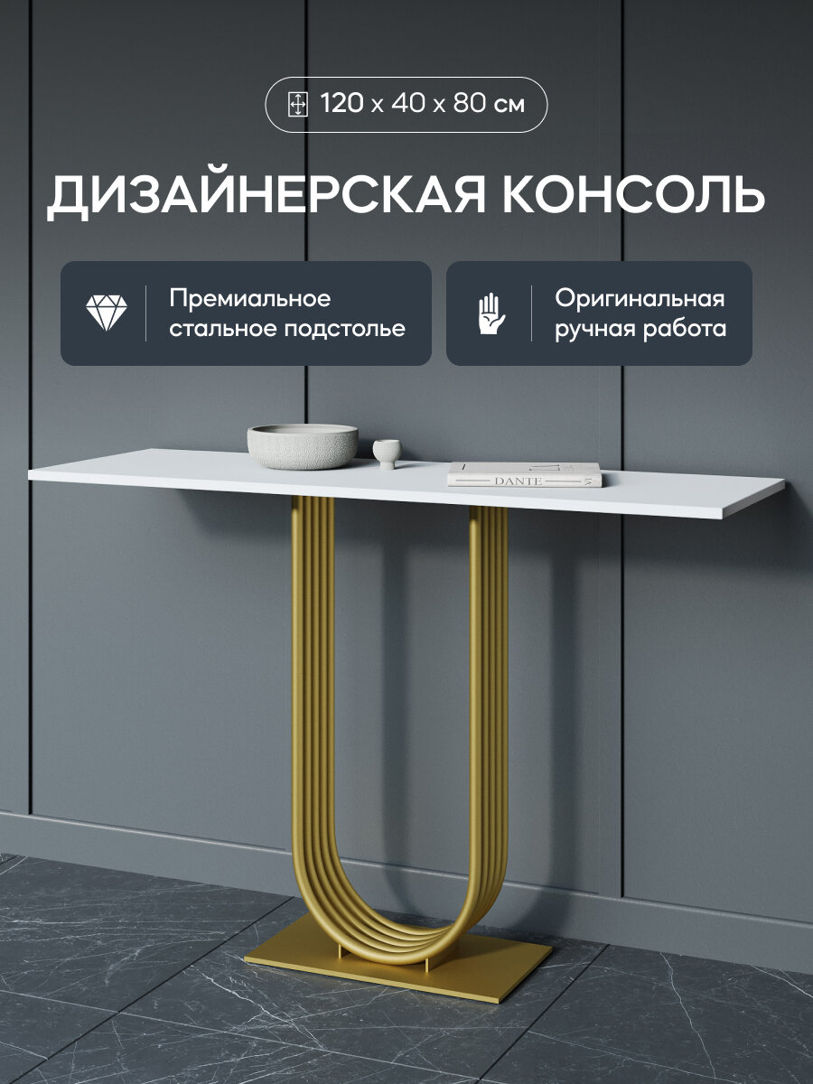 GEN GROUP Столик консольный ARFEO 120х40 см, белый мрамор с золотым подстольем