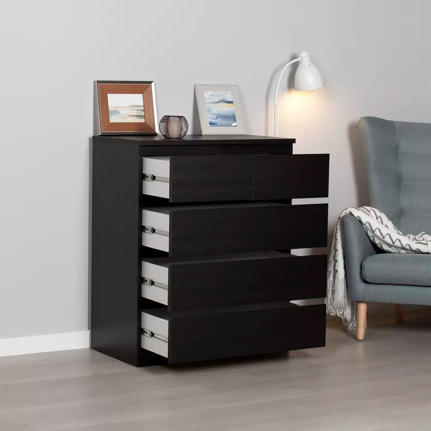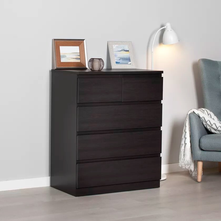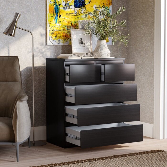 Комод ГУД ЛАКК Мальта, 3+2 ящика, с доводчиками, 80 х 48 х 99 см, ЛДСП, черно-коричневый, дуб венге