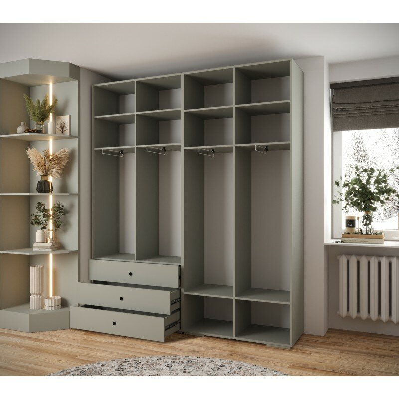 Купить Шкаф распашной МебельЛэнд24 Мори - 8 Кашемир 200x47x236 бежевый для одежды четырехдверный со шкафом с 3 ящиками