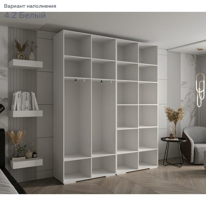 СохранитьШкаф распашной МебельЛэнд24 Мори - 7 Белый 200x47x236 для одежды четырехдверный интересное: