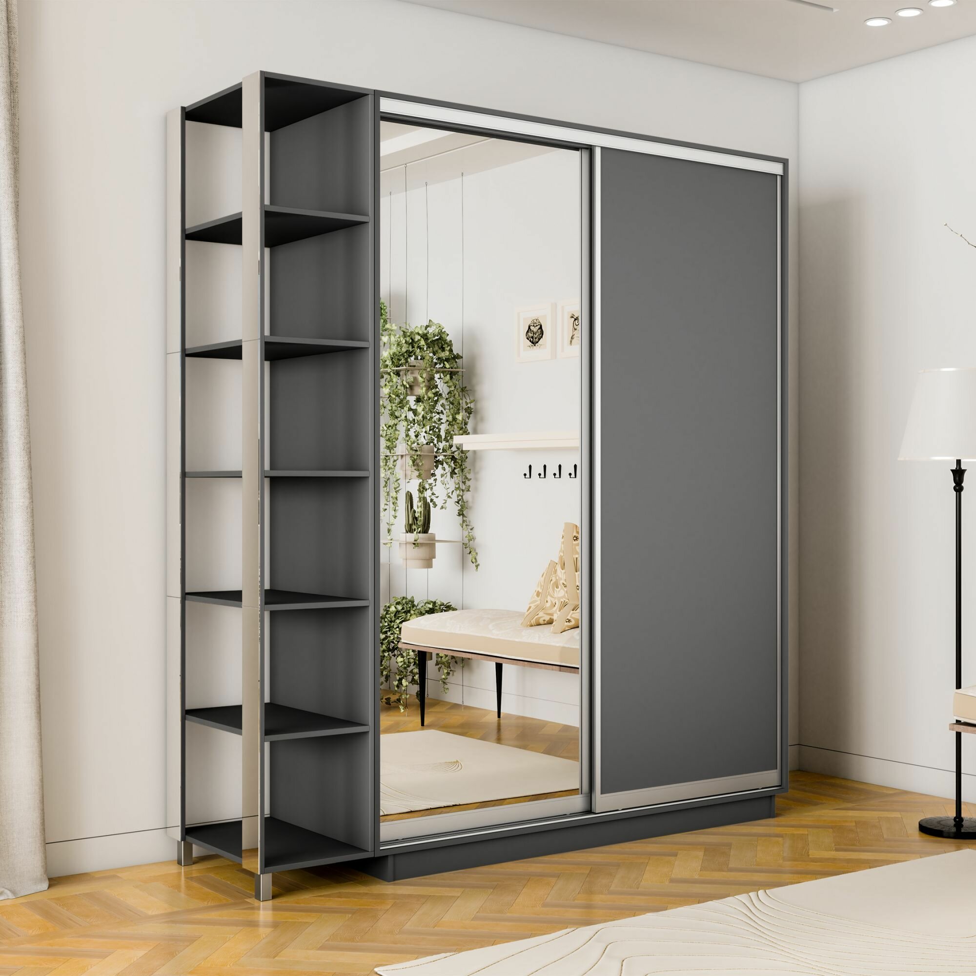 Шкаф-купе Экспресс 2-х дверный, ДСП/Зеркало, 120х60х220, Мебельная компания Е1, Серый диамант