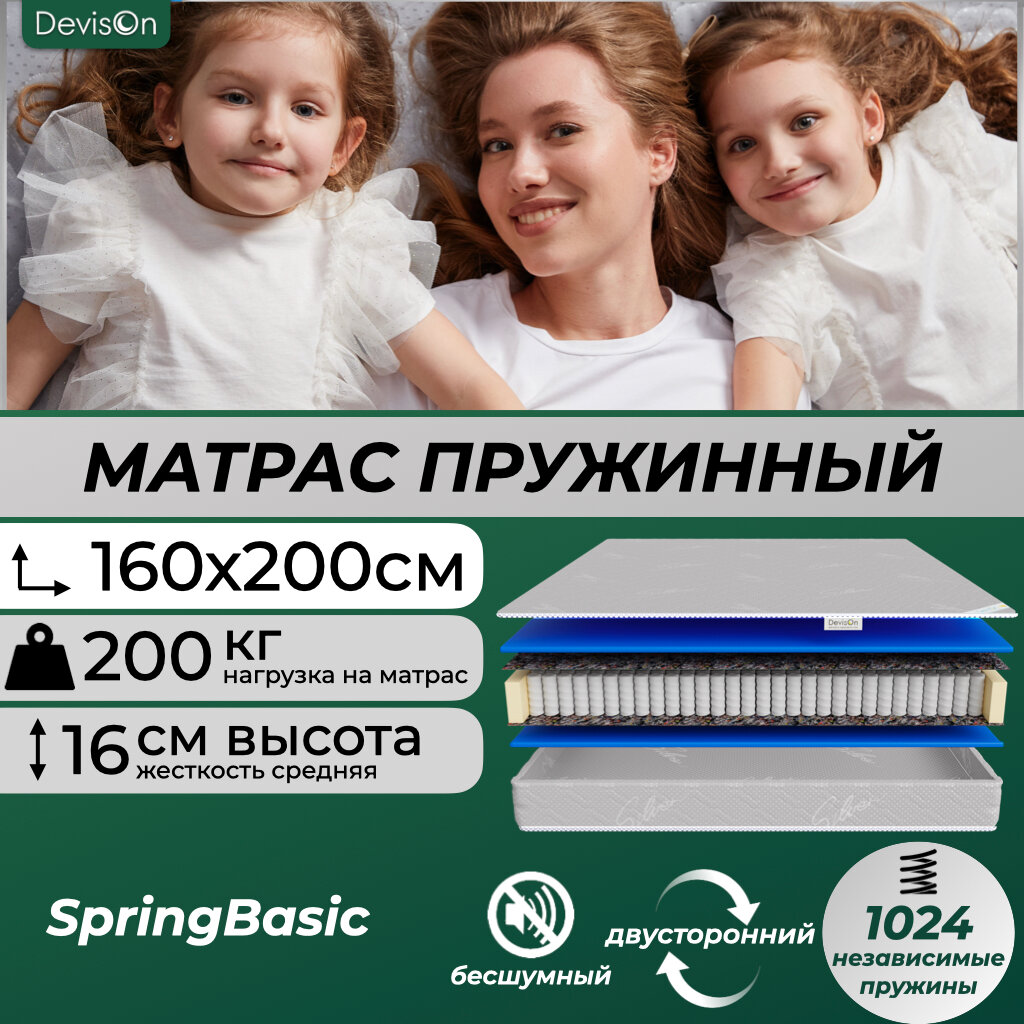 Купить Матрас ортопедический 160х200 пружинный для кровати Devison SpringBasic