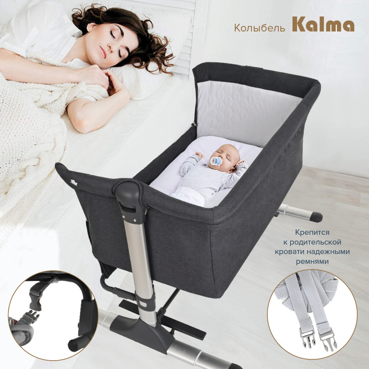 Прикроватная колыбель Pituso Kalma, цвет Grey (Графитовый)