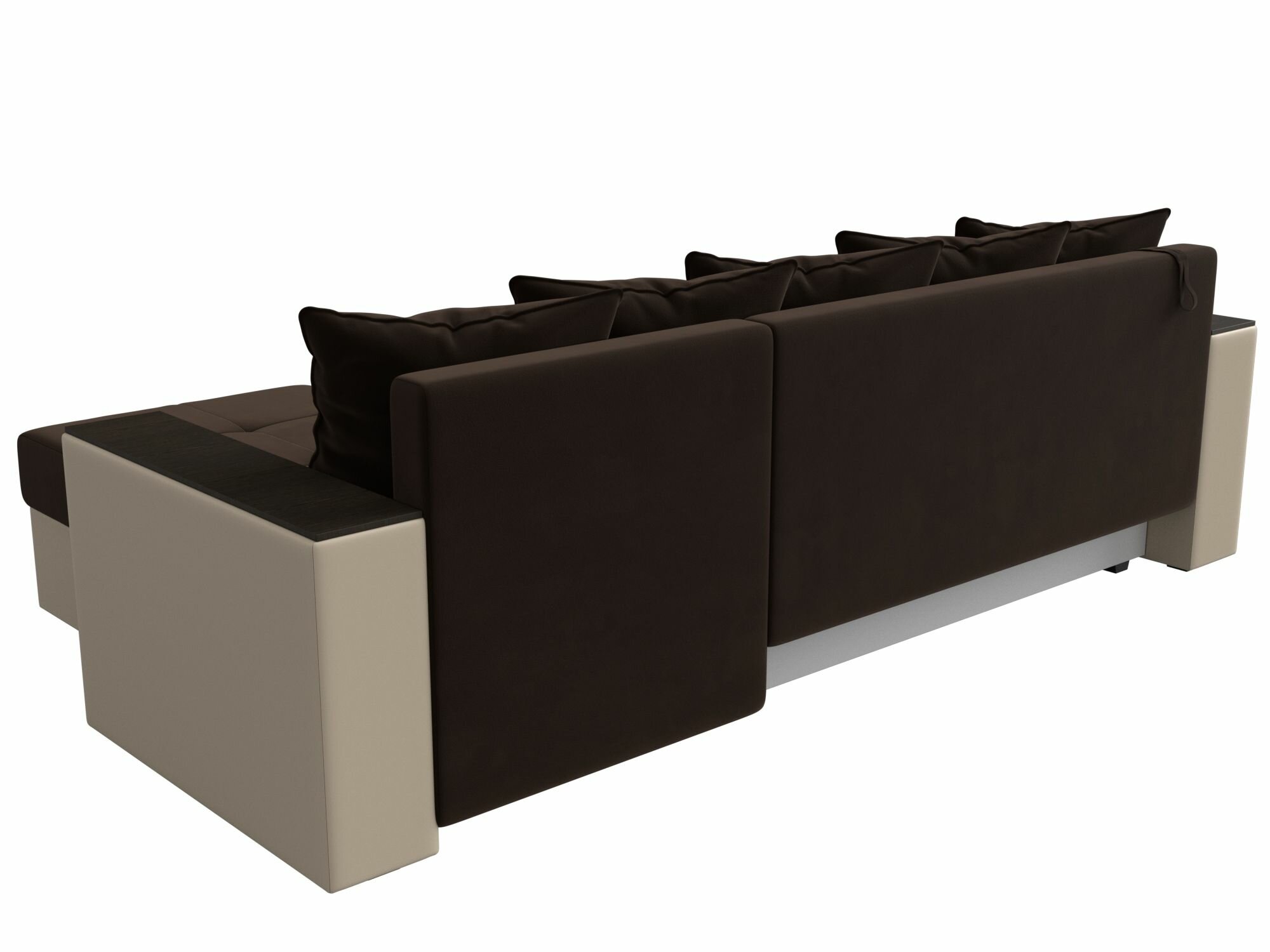 Диван угловой Дубай Лайт левый угол, микровельвет, механизм еврокнижка, коричневый, модель 114173L