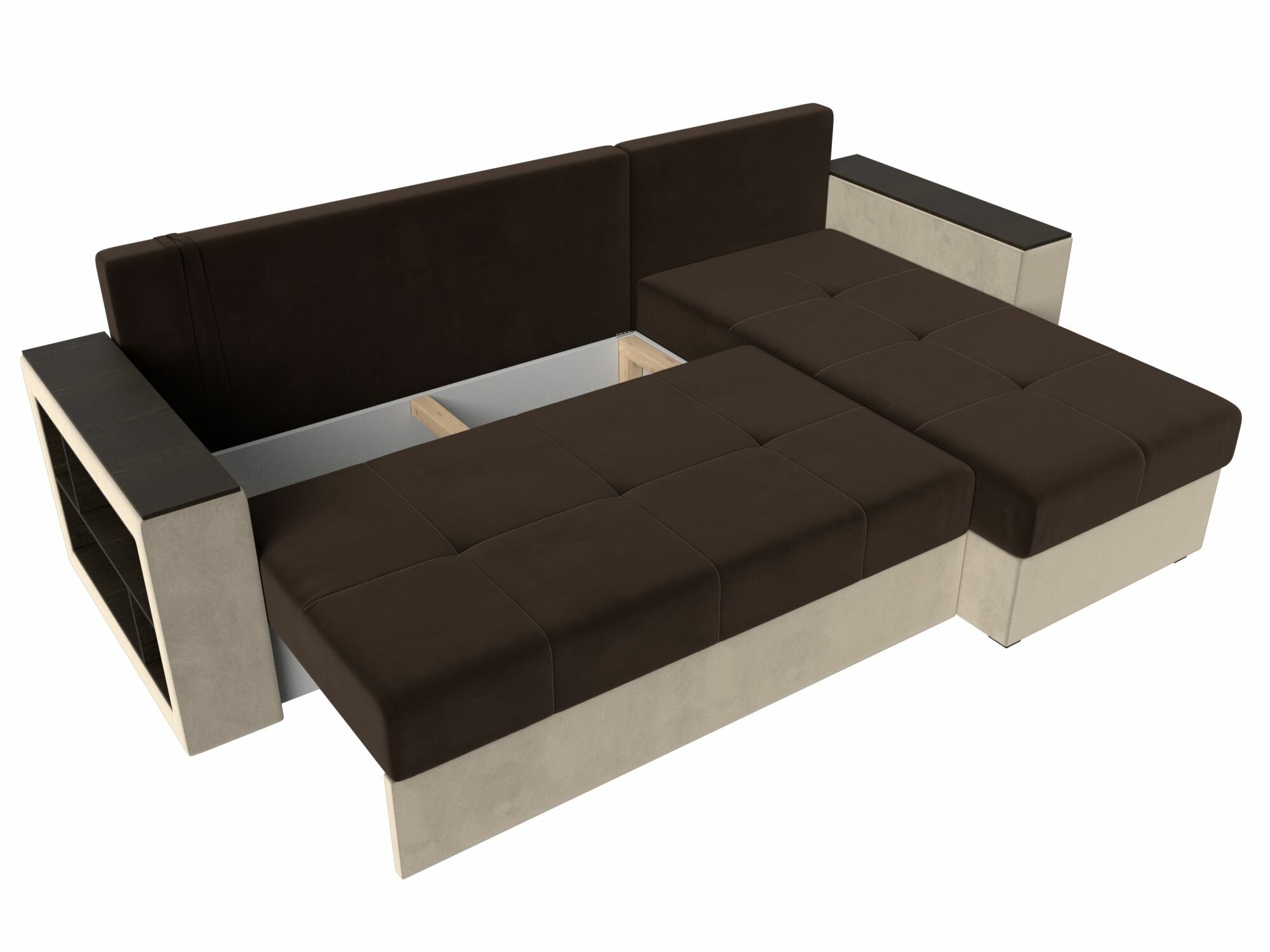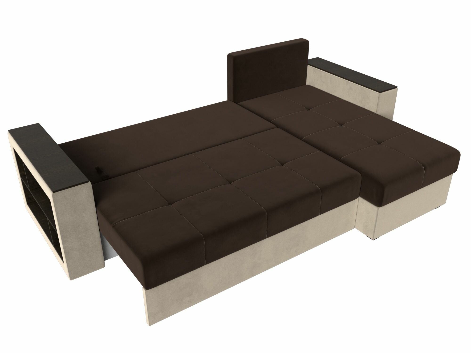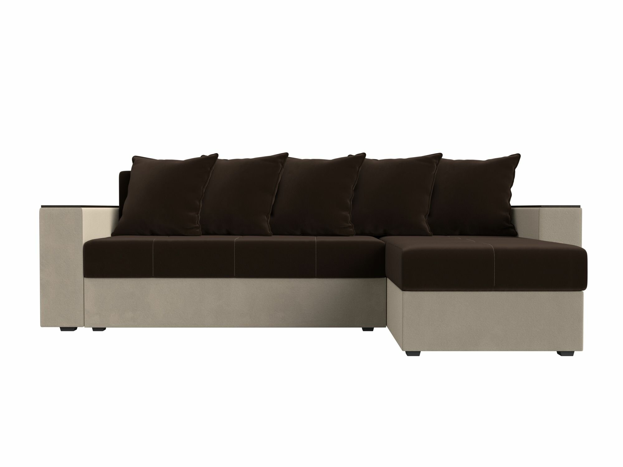 Диван угловой Дубай Лайт правый угол, велюр, механизм еврокнижка, коричневый, модель 114156