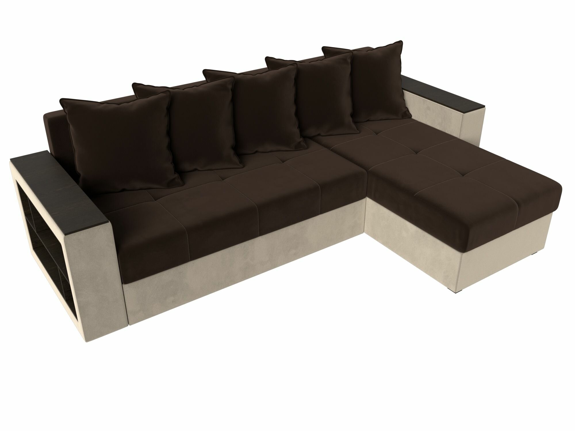 Купить Диван угловой Дубай Лайт правый угол, микровельвет, механизм еврокнижка, коричневый, модель 114173