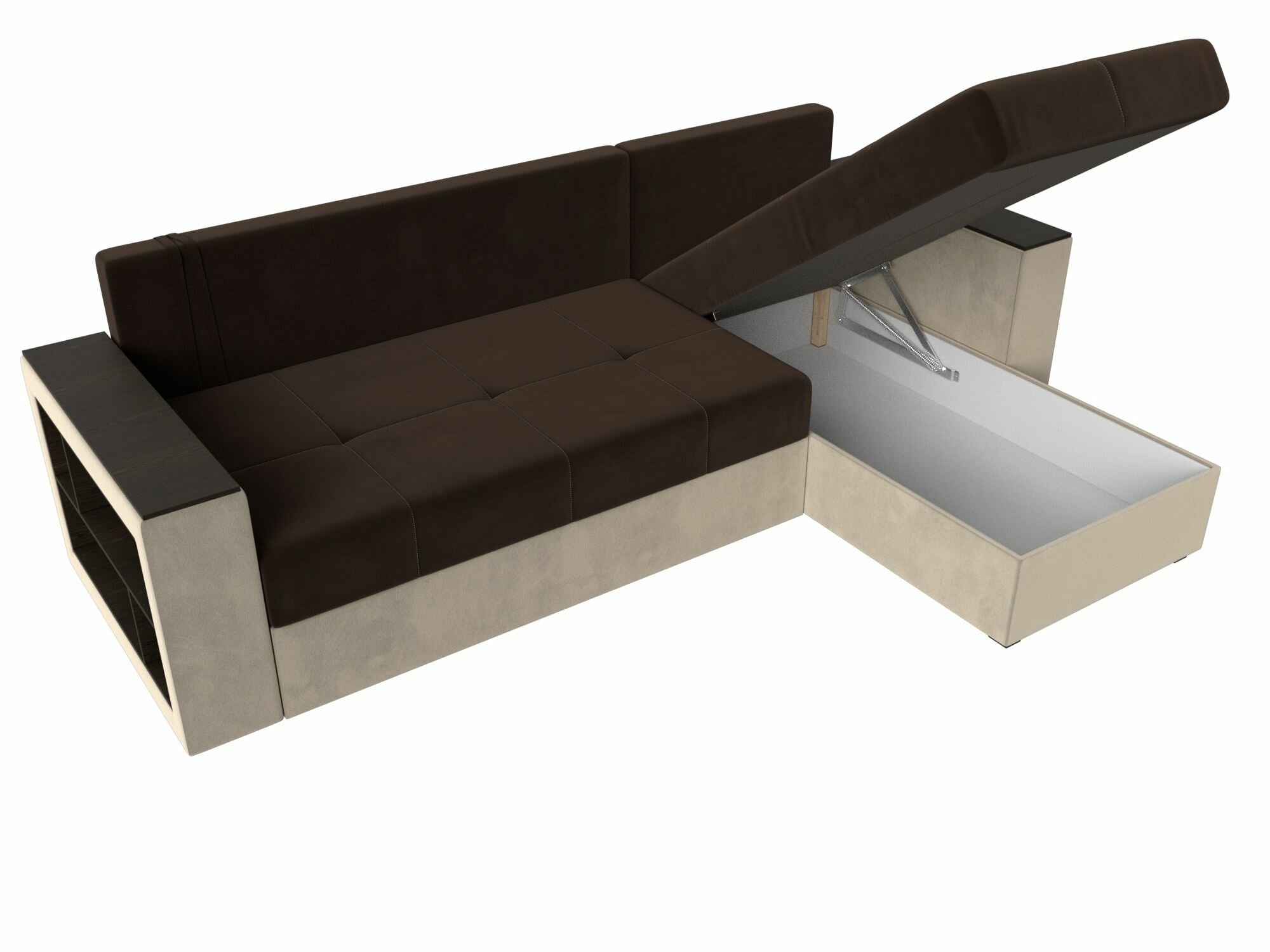 Диван угловой Дубай Лайт левый угол, велюр, механизм еврокнижка, коричневый, модель 114156L