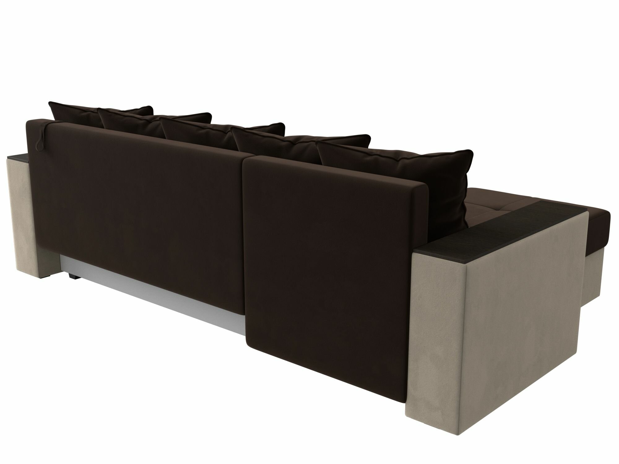 Купить Диван угловой Дубай Лайт левый угол, микровельвет, механизм еврокнижка, коричневый, модель 114173L