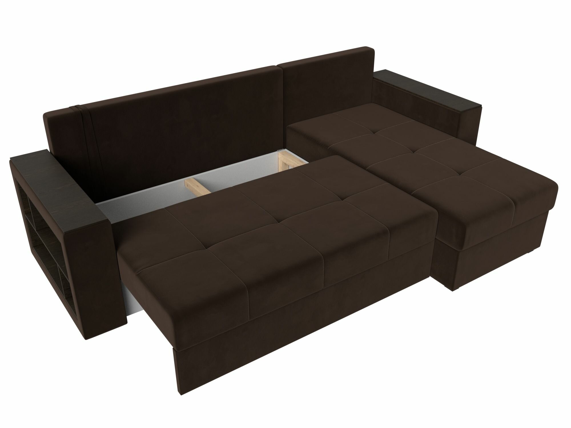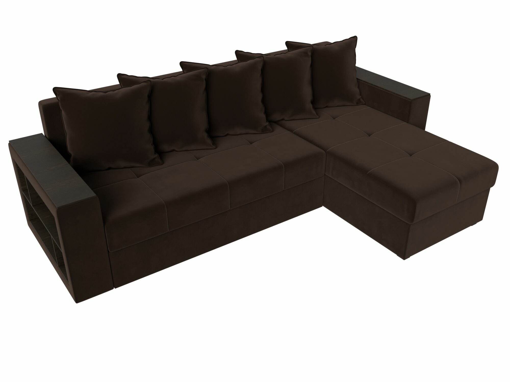 Диван угловой Дубай Лайт правый угол, велюр, механизм еврокнижка, коричневый, модель 114156