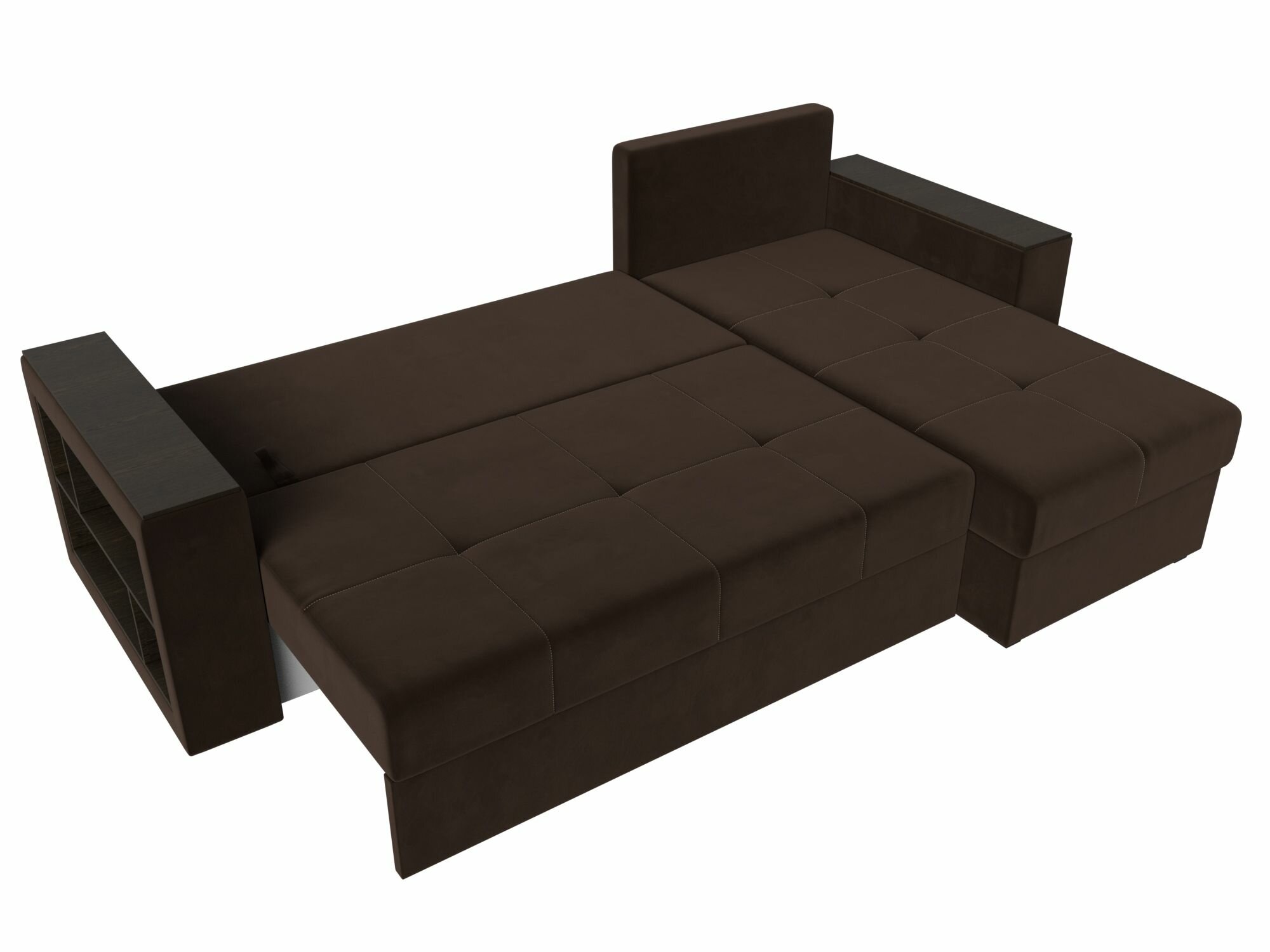 Диван угловой Дубай Лайт левый угол, велюр, механизм еврокнижка, коричневый, модель 114156L