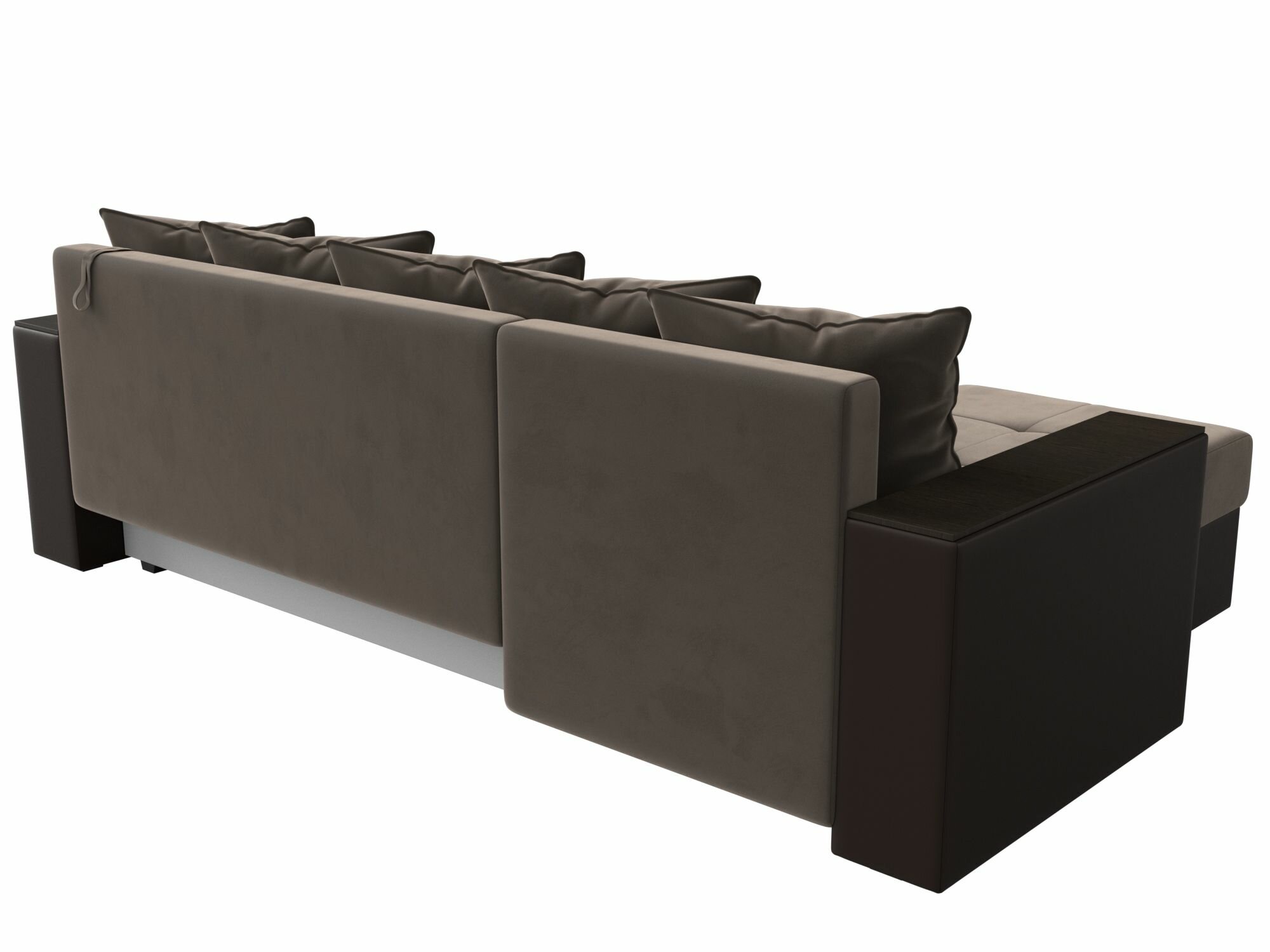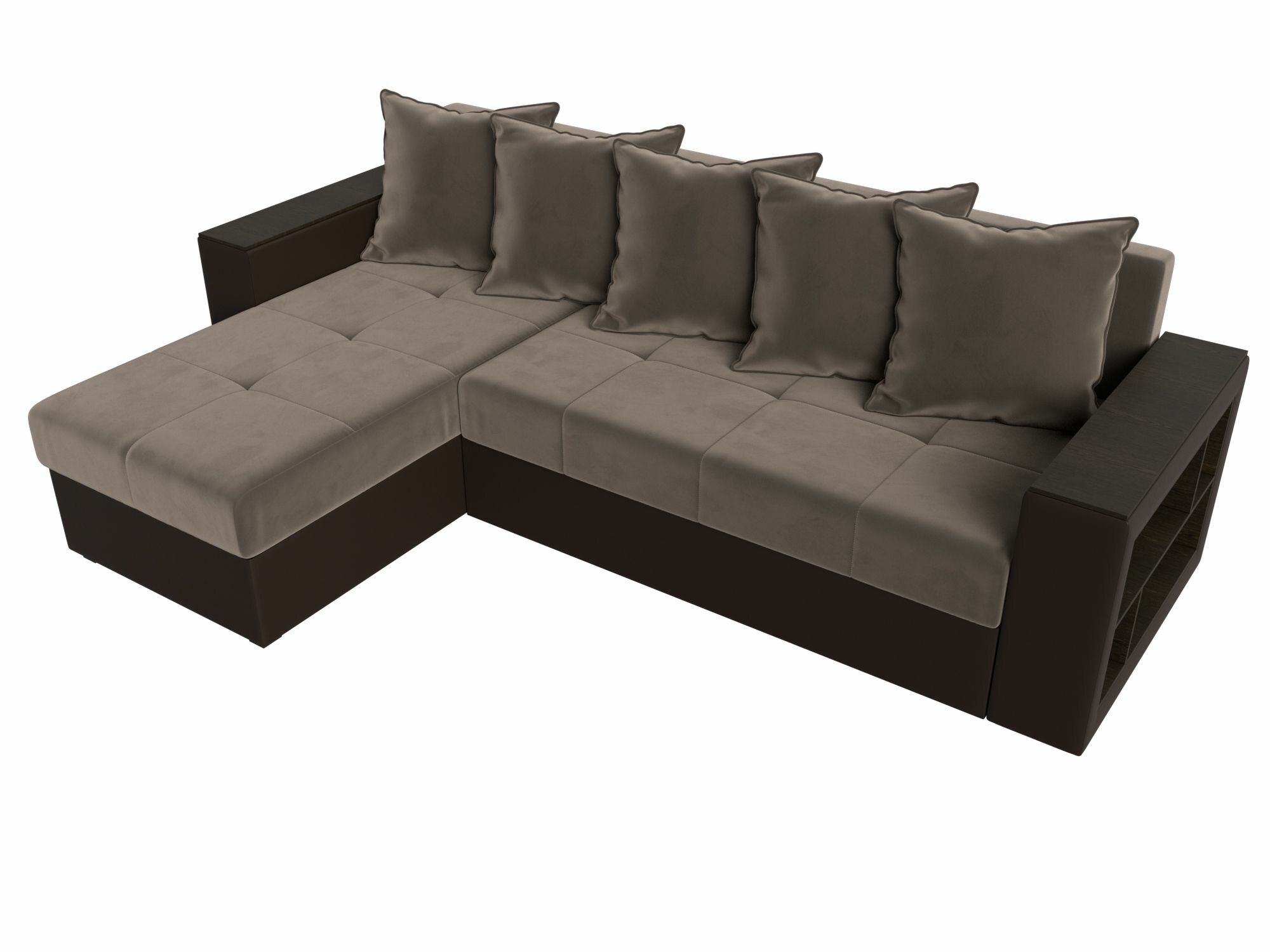 Диван угловой Дубай Лайт левый угол, микровельвет, механизм еврокнижка, коричневый, модель 114173L