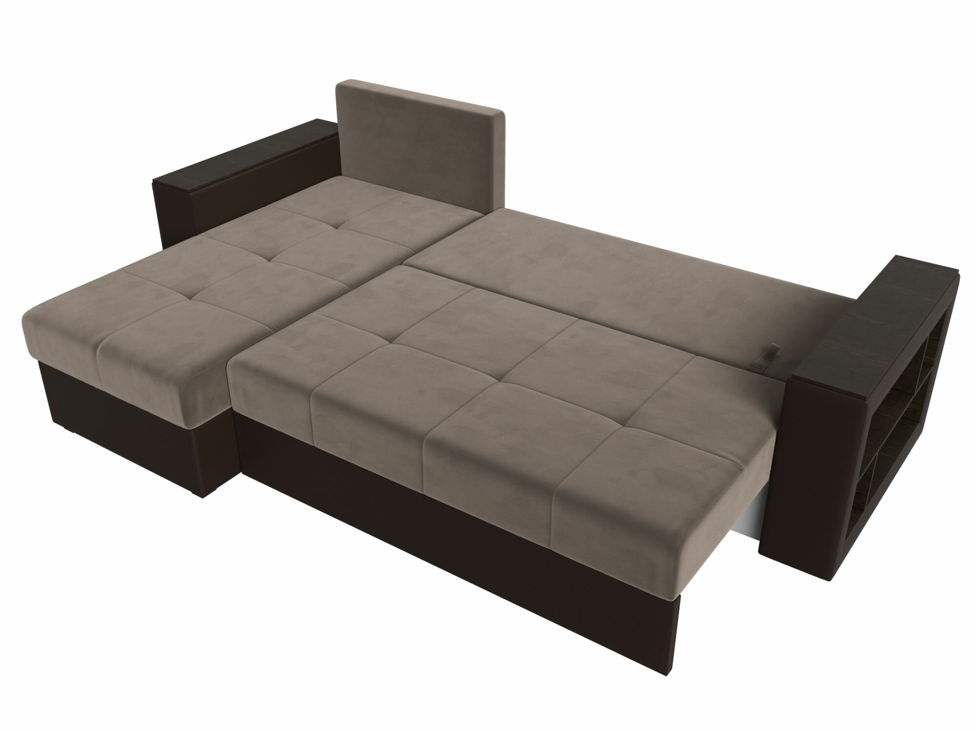 Диван угловой Дубай Лайт левый угол, микровельвет, механизм еврокнижка, коричневый, модель 114183L