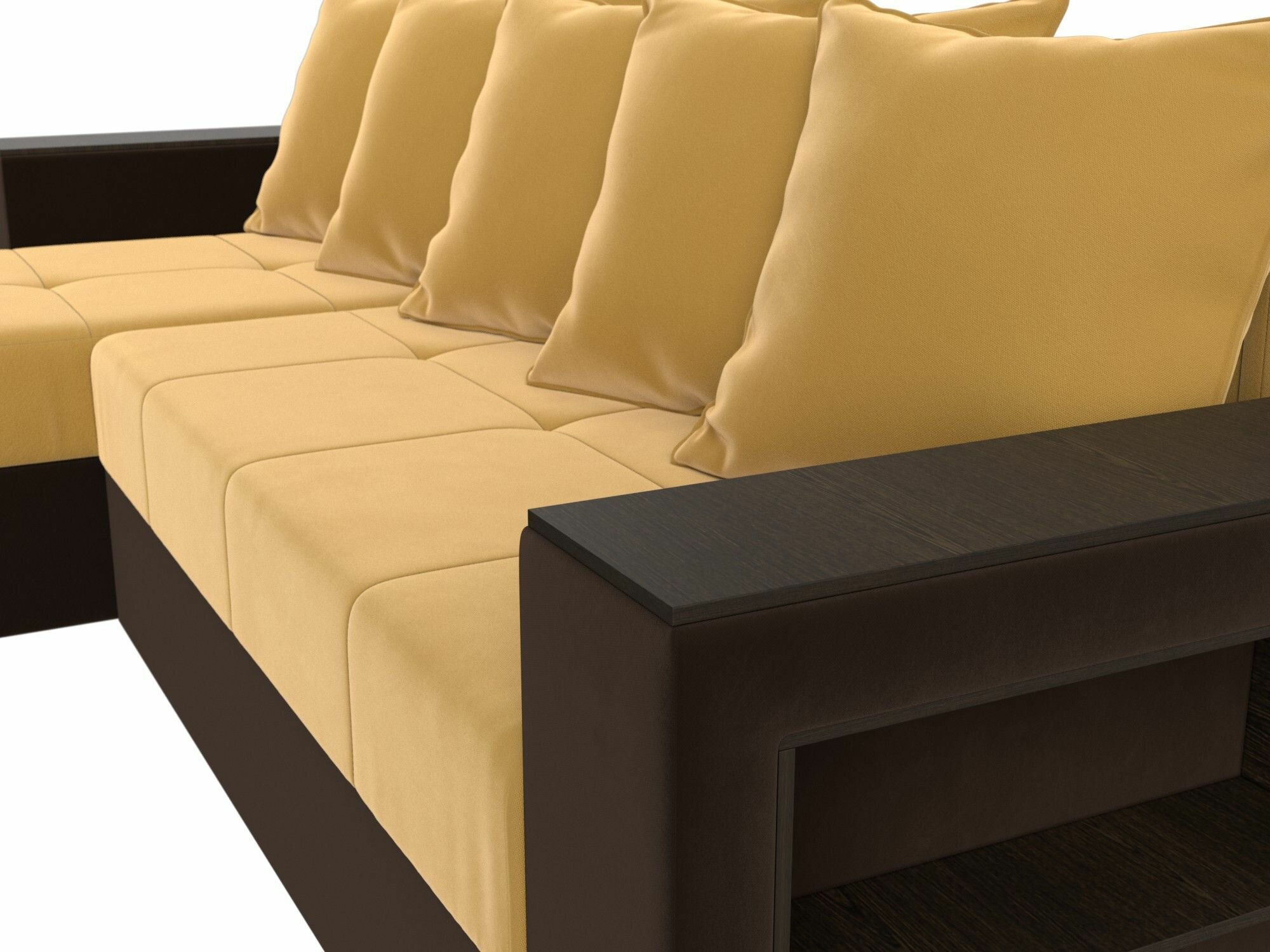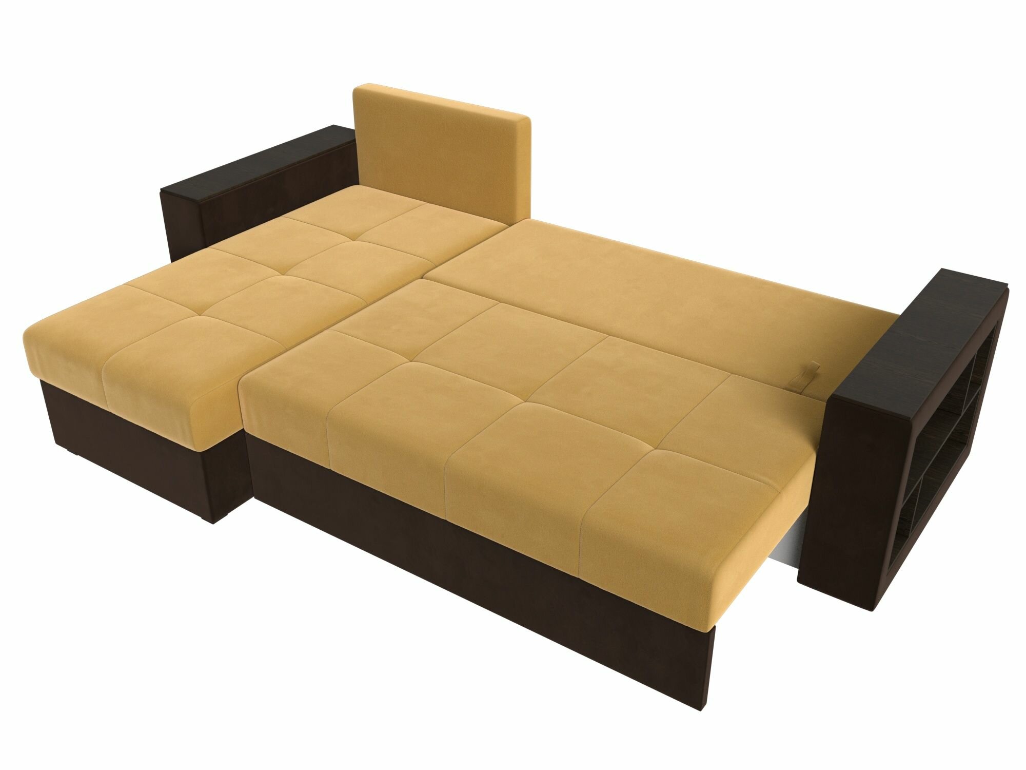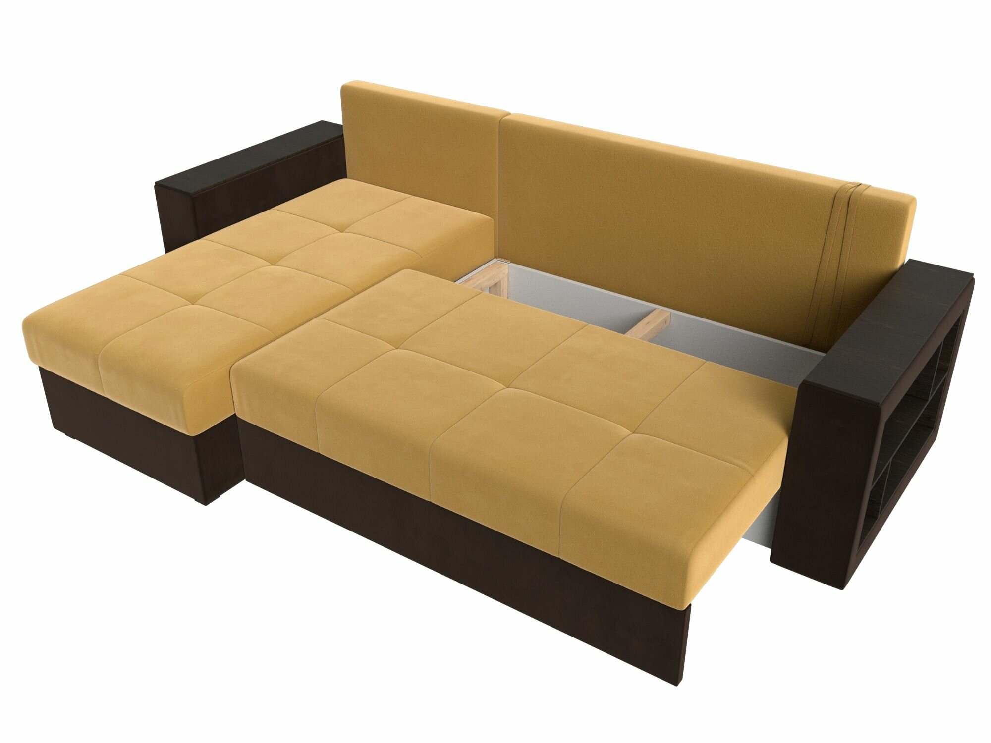 Диван угловой Дубай Лайт левый угол, микровельвет, механизм еврокнижка, желтый, модель 114165L