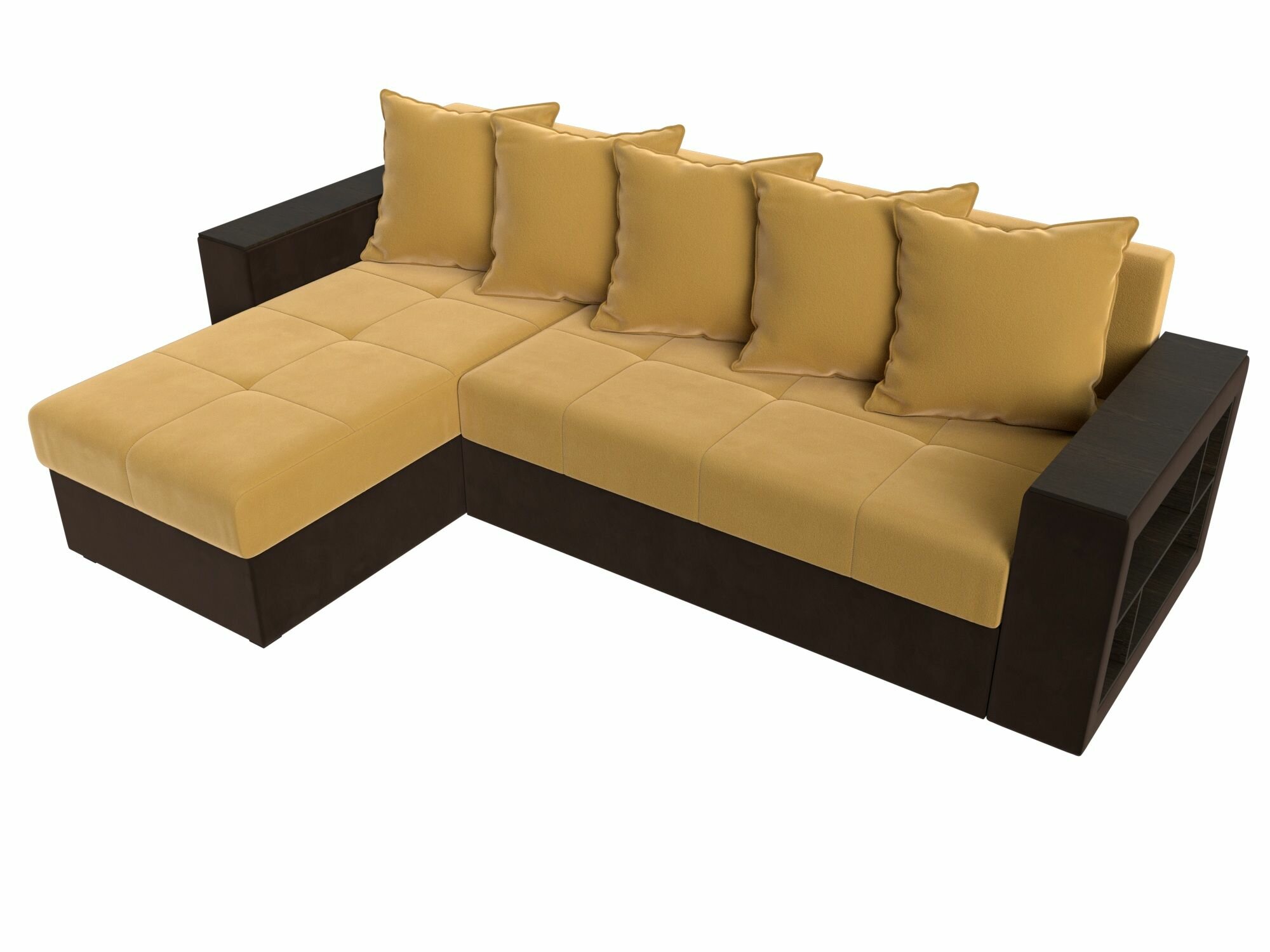 Купить Диван угловой Дубай Лайт левый угол, микровельвет, механизм еврокнижка, желтый, модель 114174L