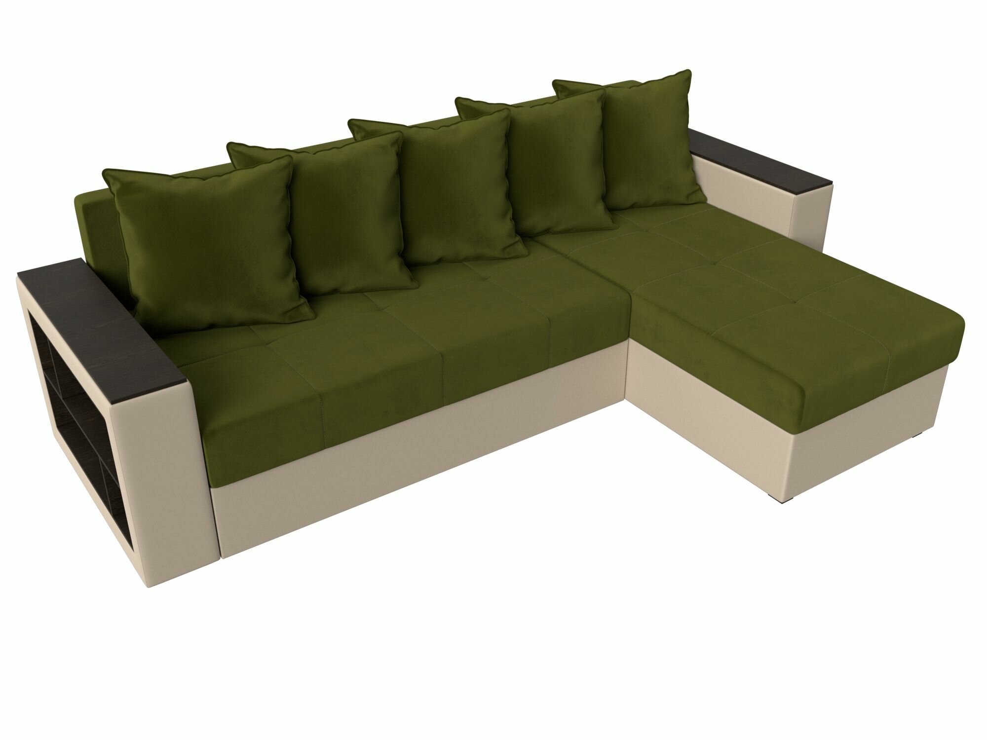 Диван угловой Дубай Лайт правый угол, микровельвет, механизм еврокнижка, зеленый, модель 114177