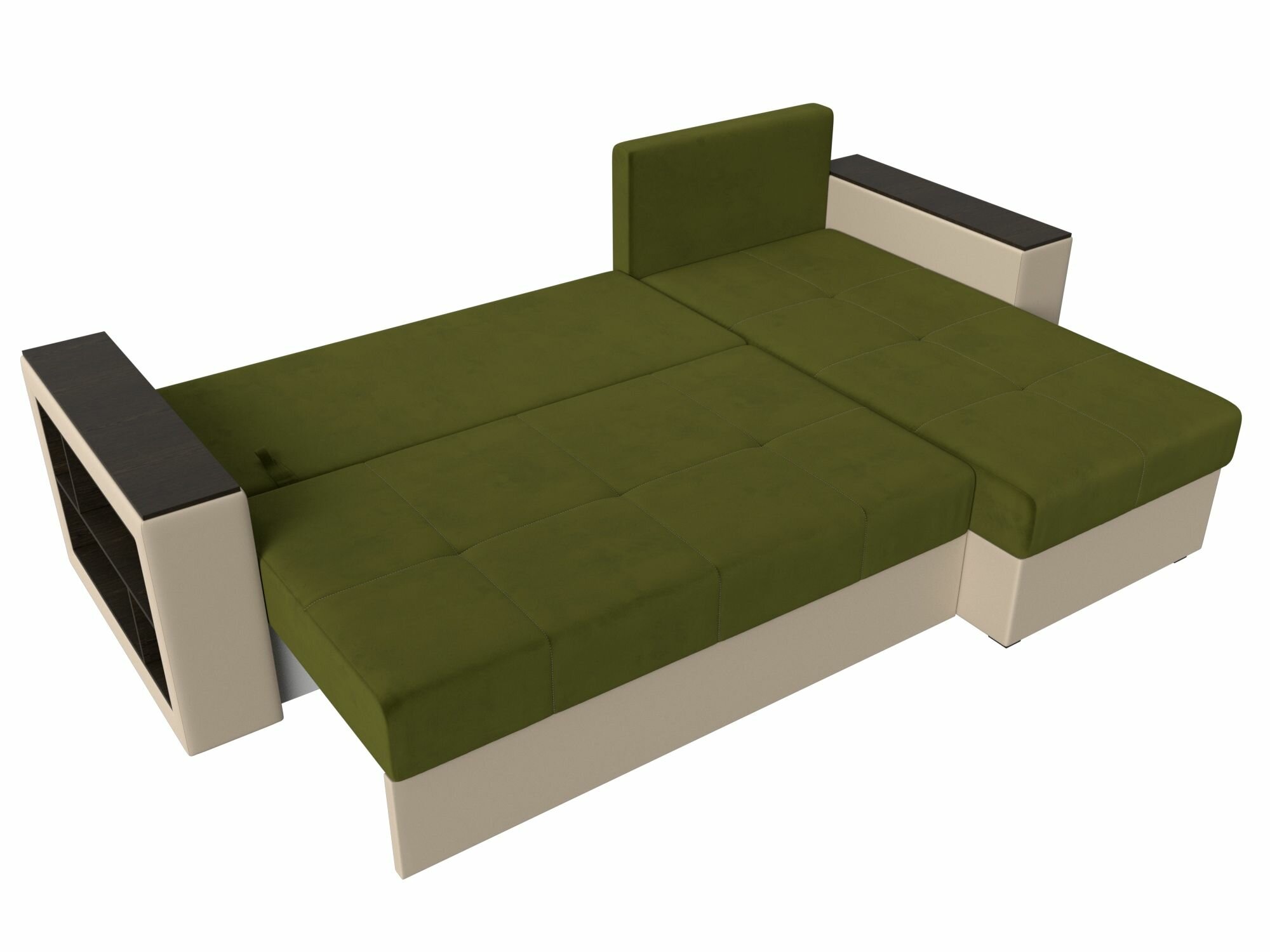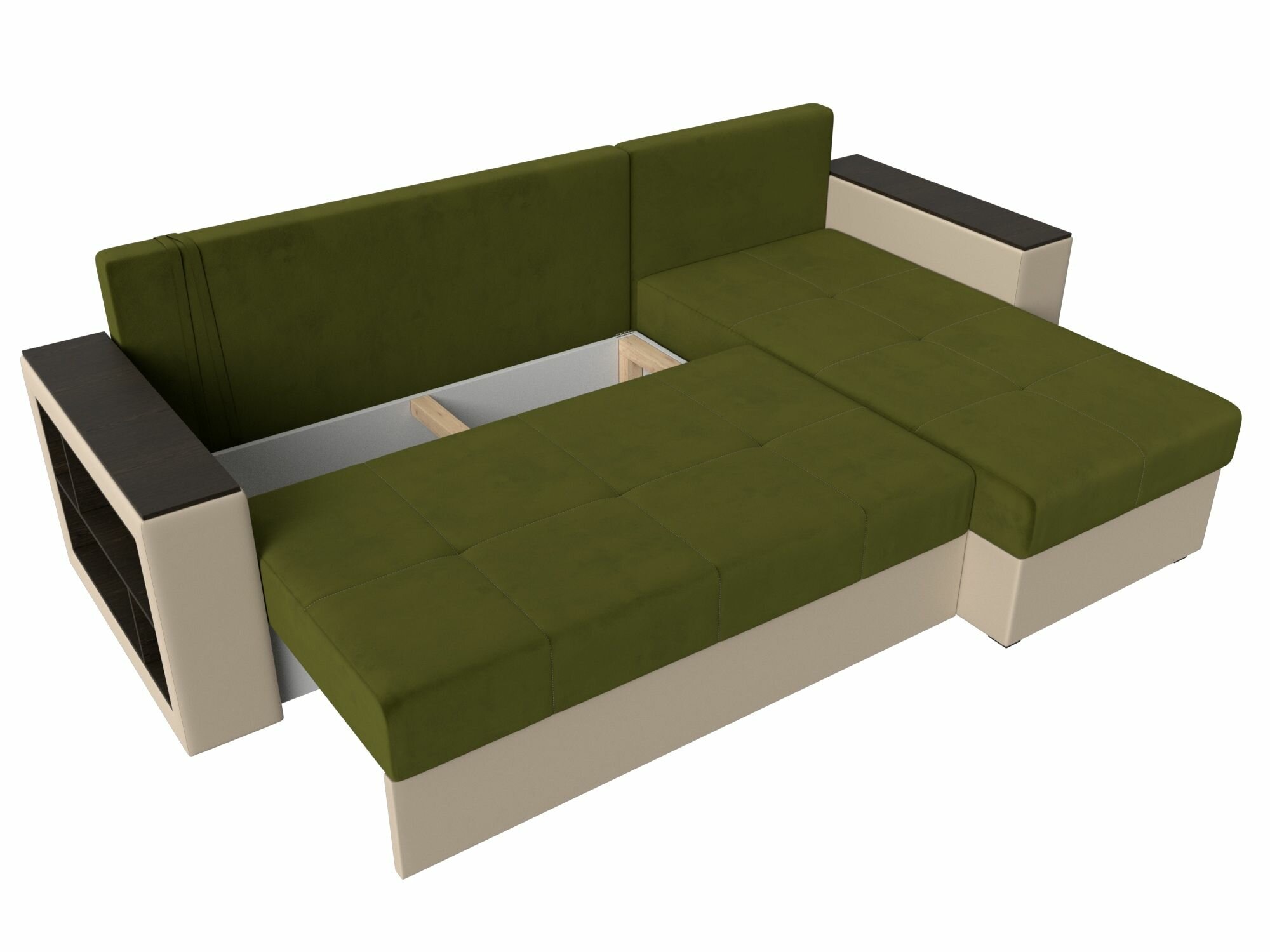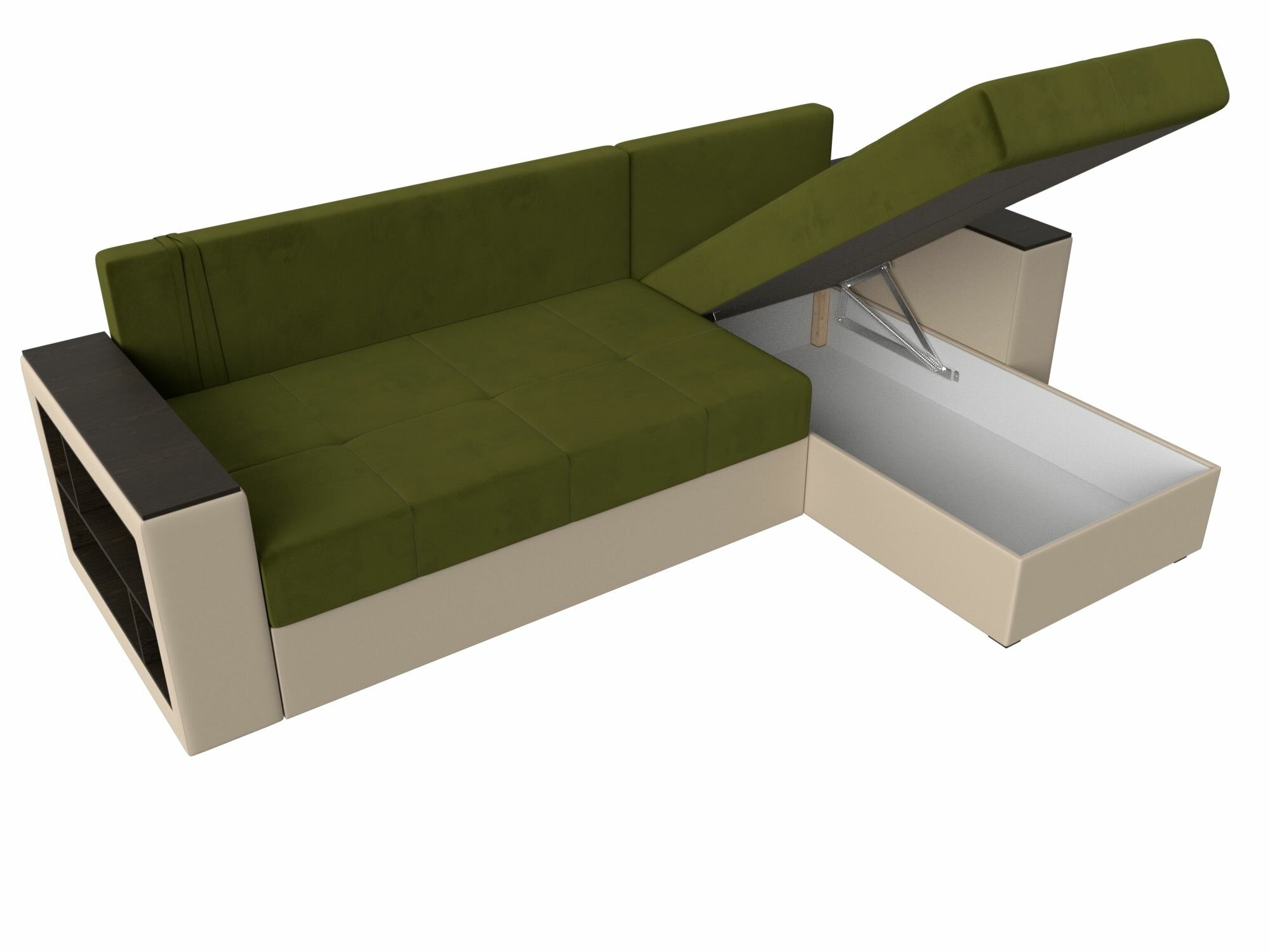 Диван угловой Дубай Лайт левый угол, микровельвет, механизм еврокнижка, зеленый, модель 114186L