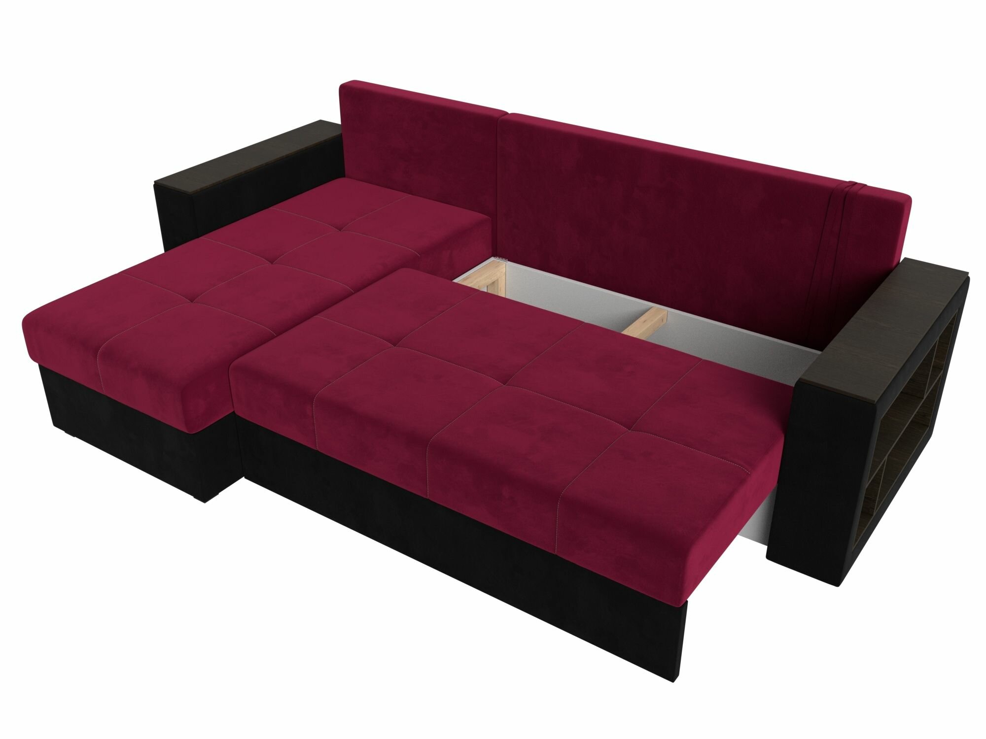 Диван угловой Дубай Лайт левый угол, микровельвет, механизм еврокнижка, Бордовый, модель 114169L