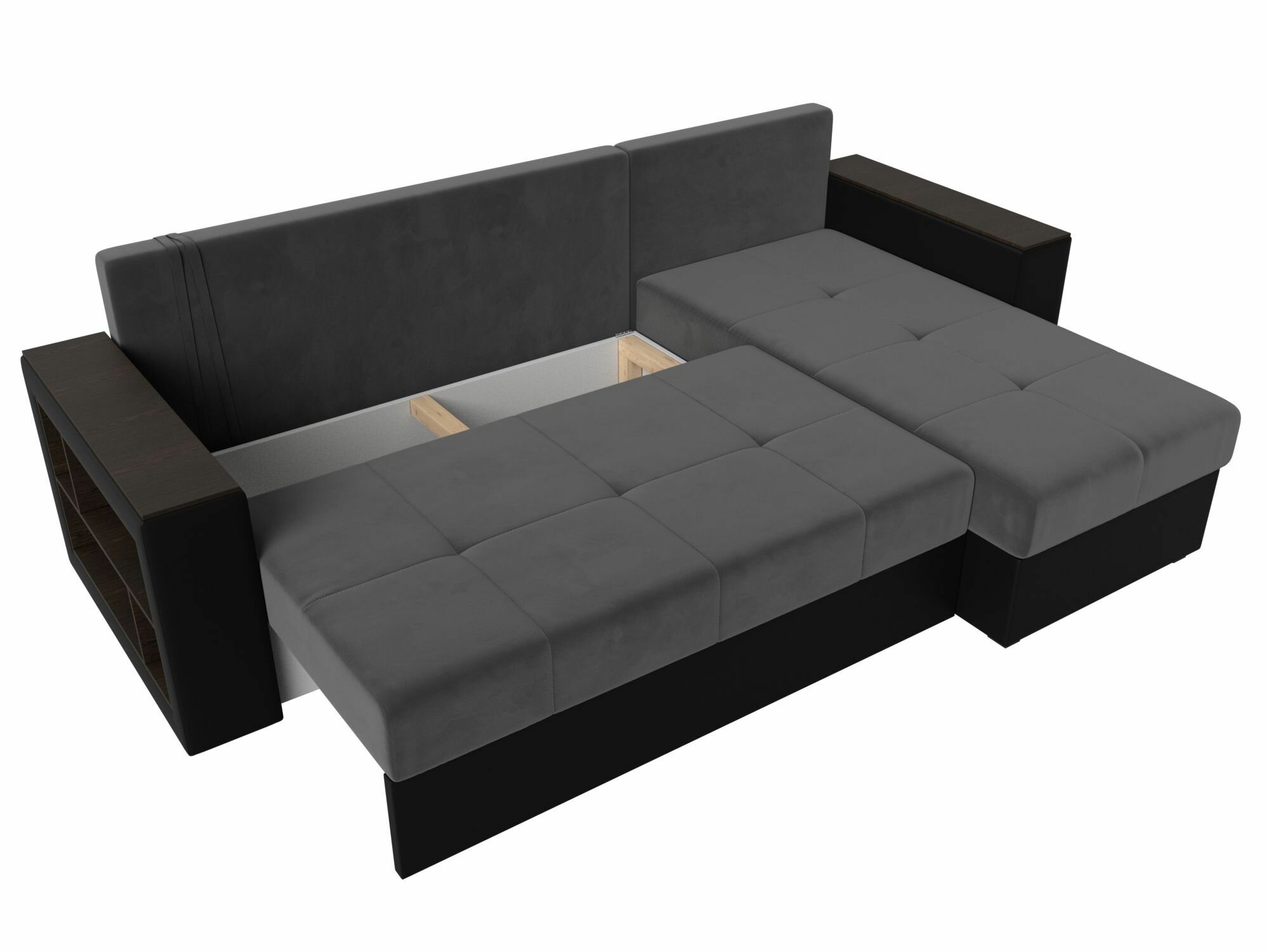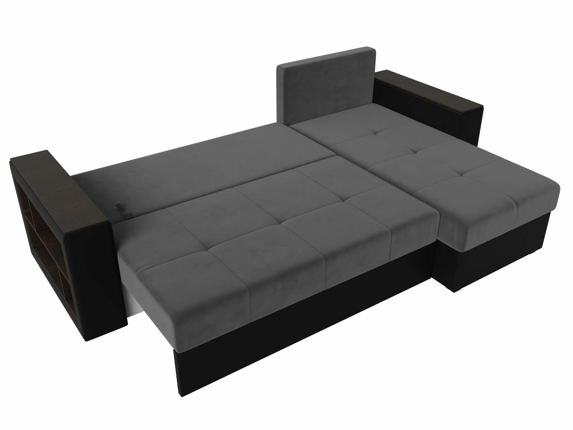 Диван угловой Дубай Лайт левый угол, велюр, механизм еврокнижка, серый, модель 114152L