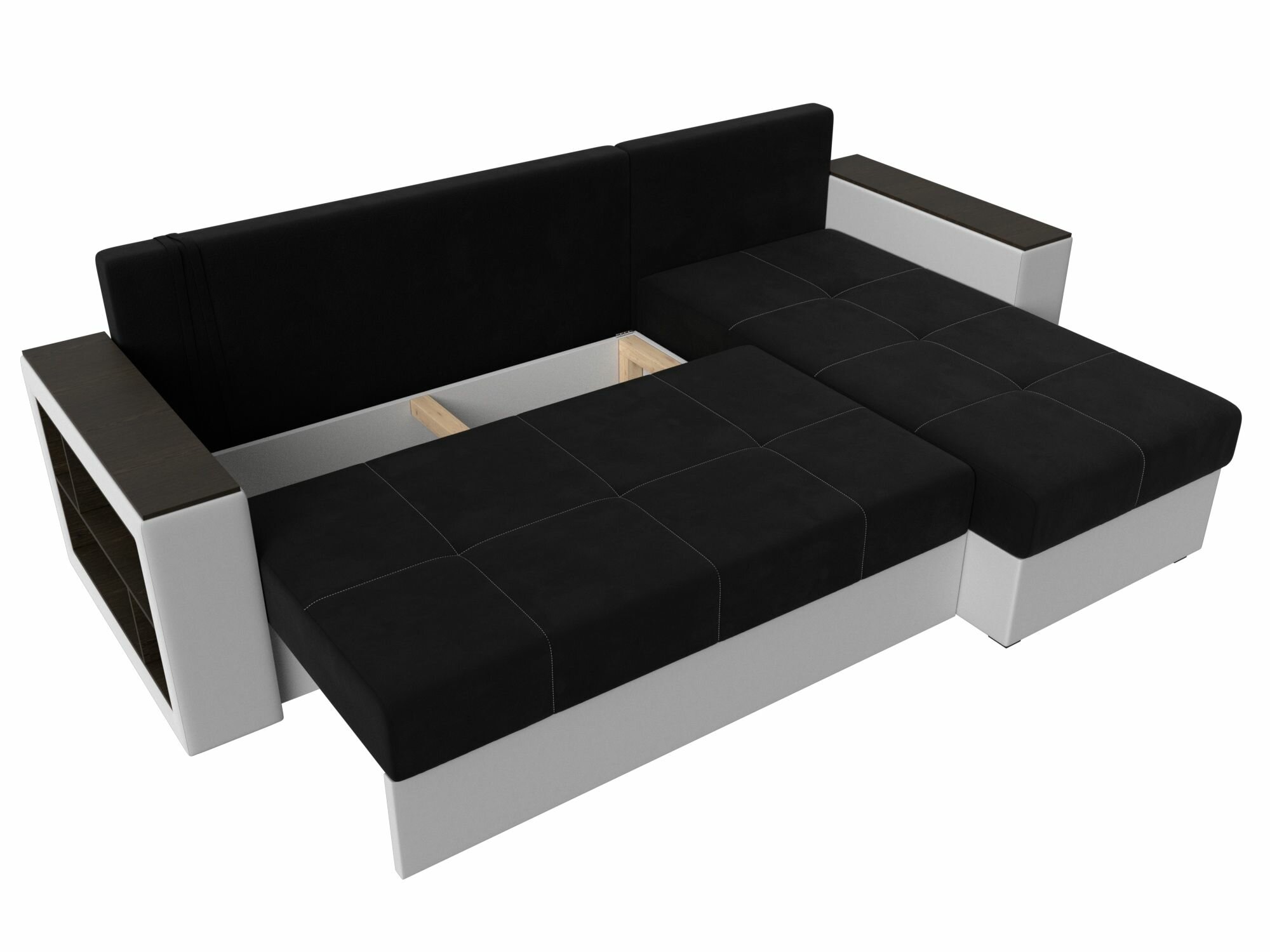 Диван угловой Дубай Лайт левый угол, велюр, механизм еврокнижка, черный, модель 114153L
