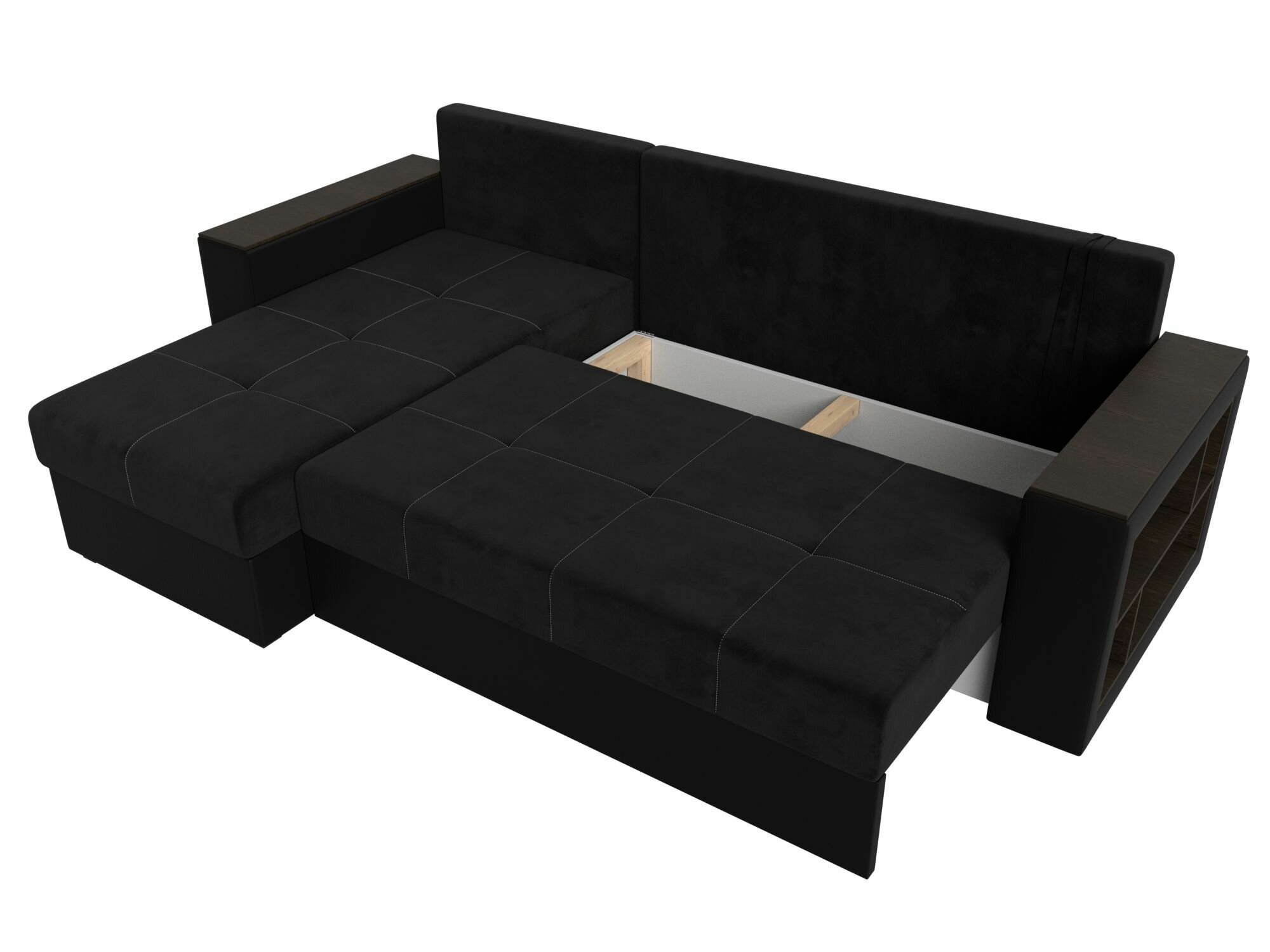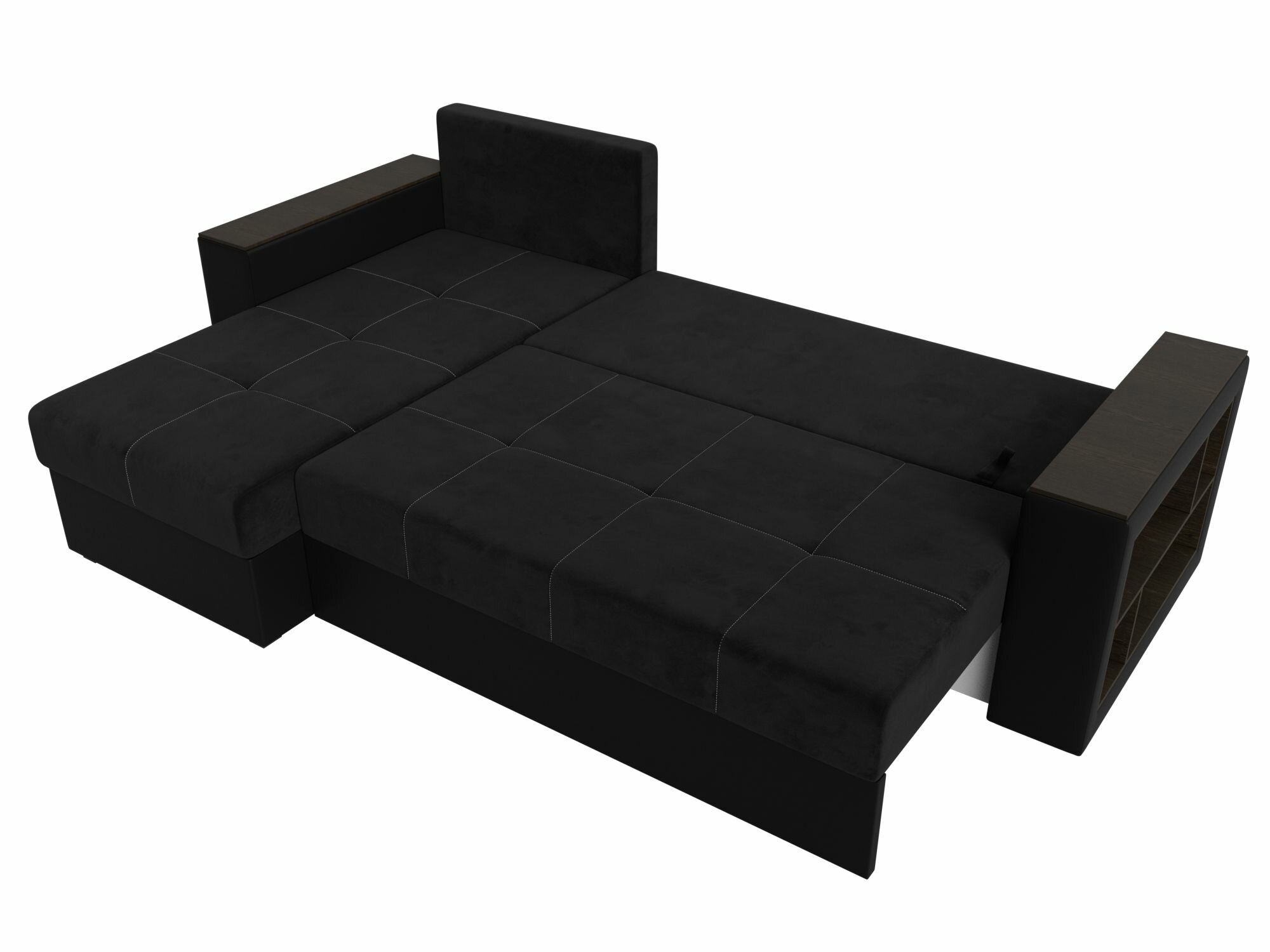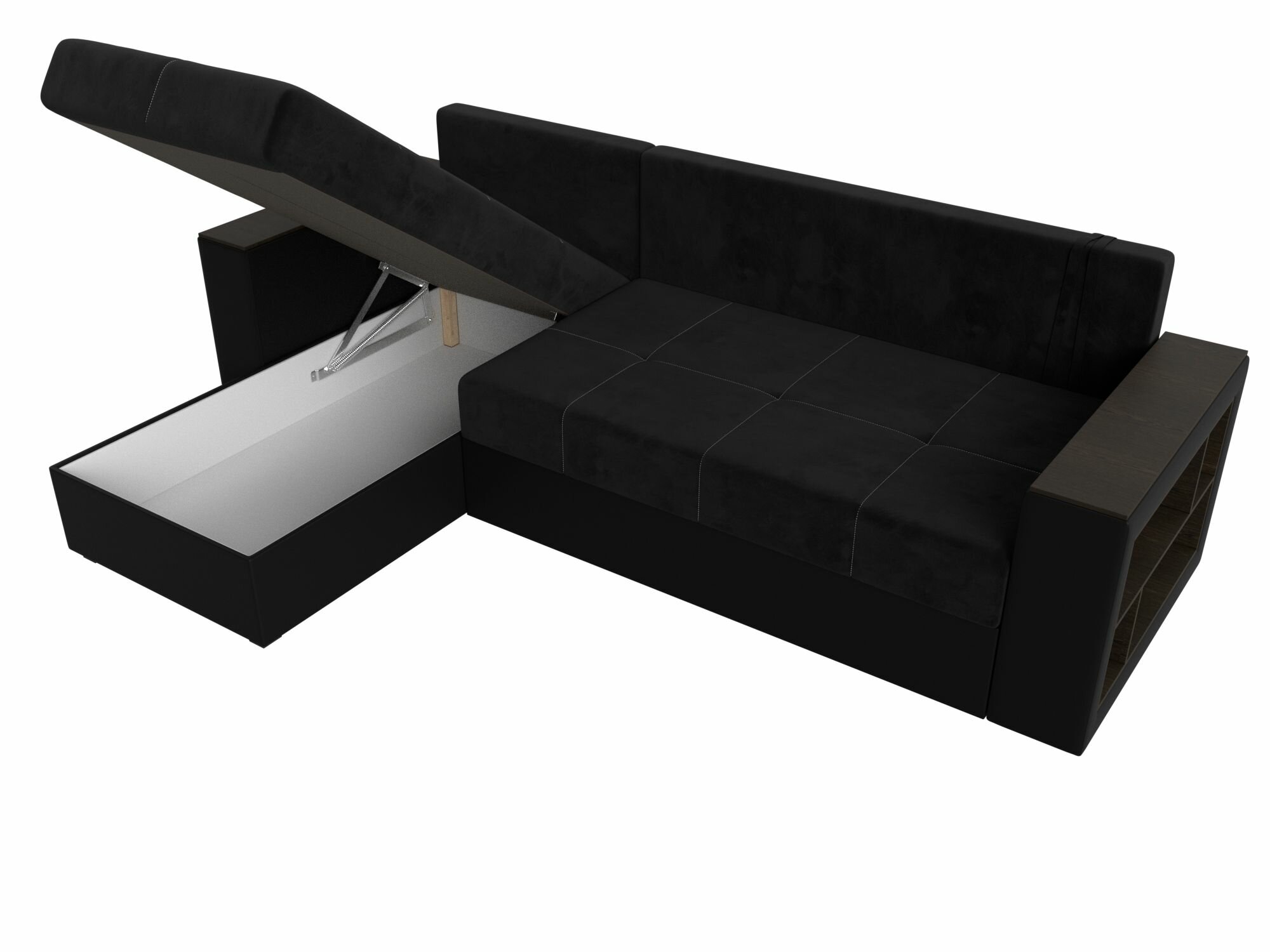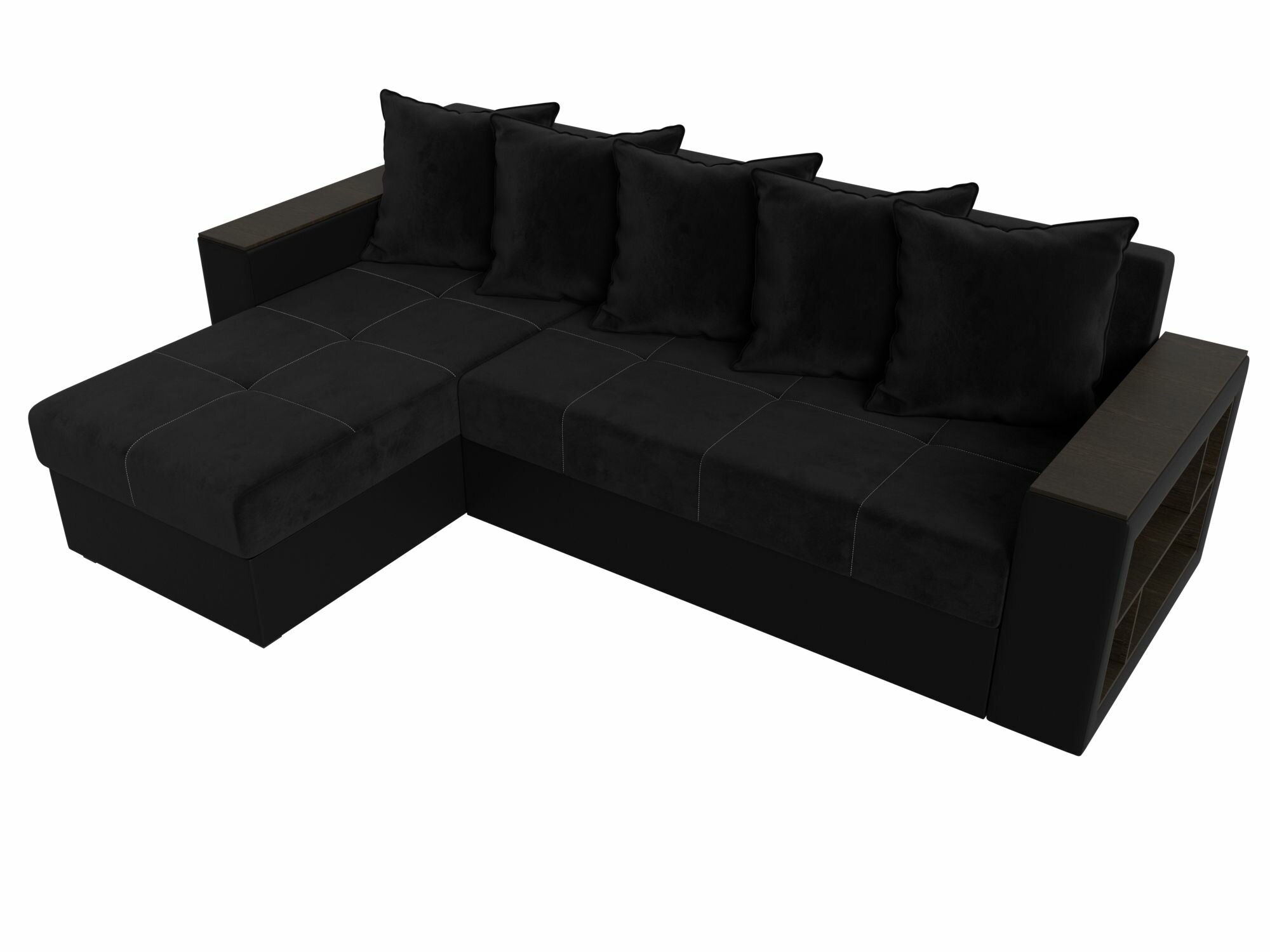 Диван угловой Дубай Лайт левый угол, велюр, механизм еврокнижка, черный, модель 114153L