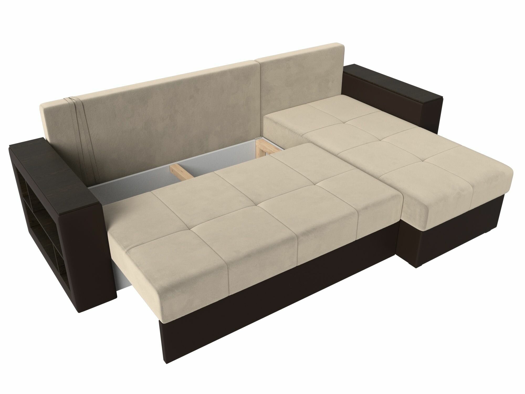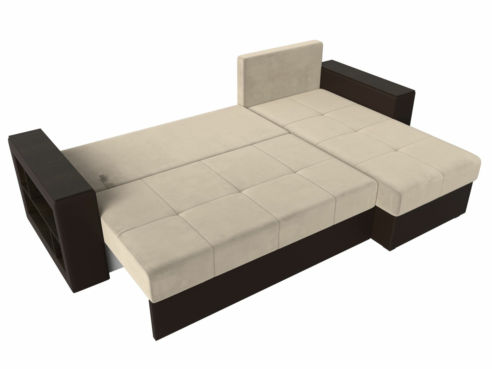 Диван угловой Дубай Лайт правый угол, велюр, механизм еврокнижка, бежевый, модель 114151