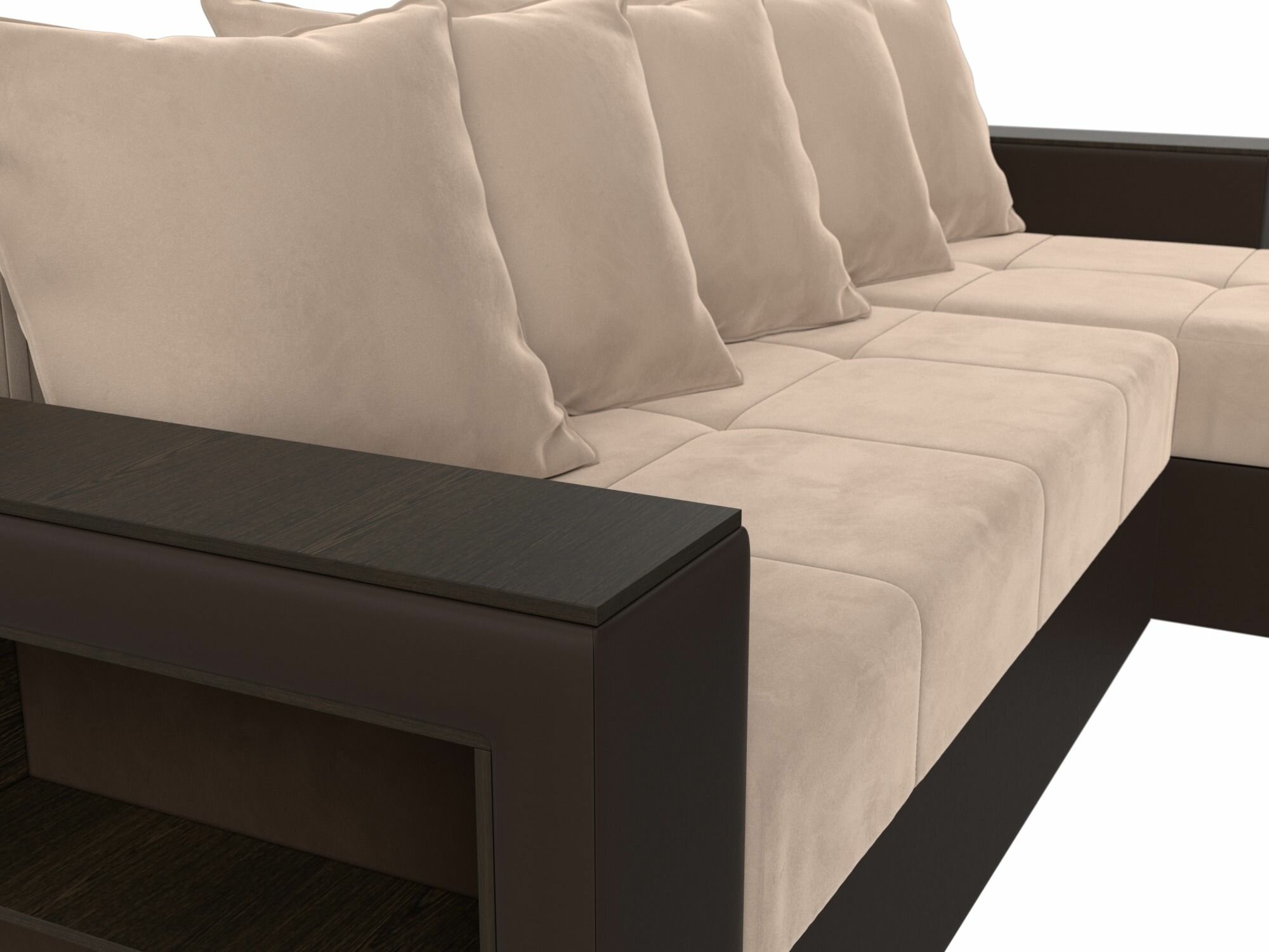 Диван угловой Дубай Лайт правый угол, велюр, механизм еврокнижка, бежевый, модель 114151