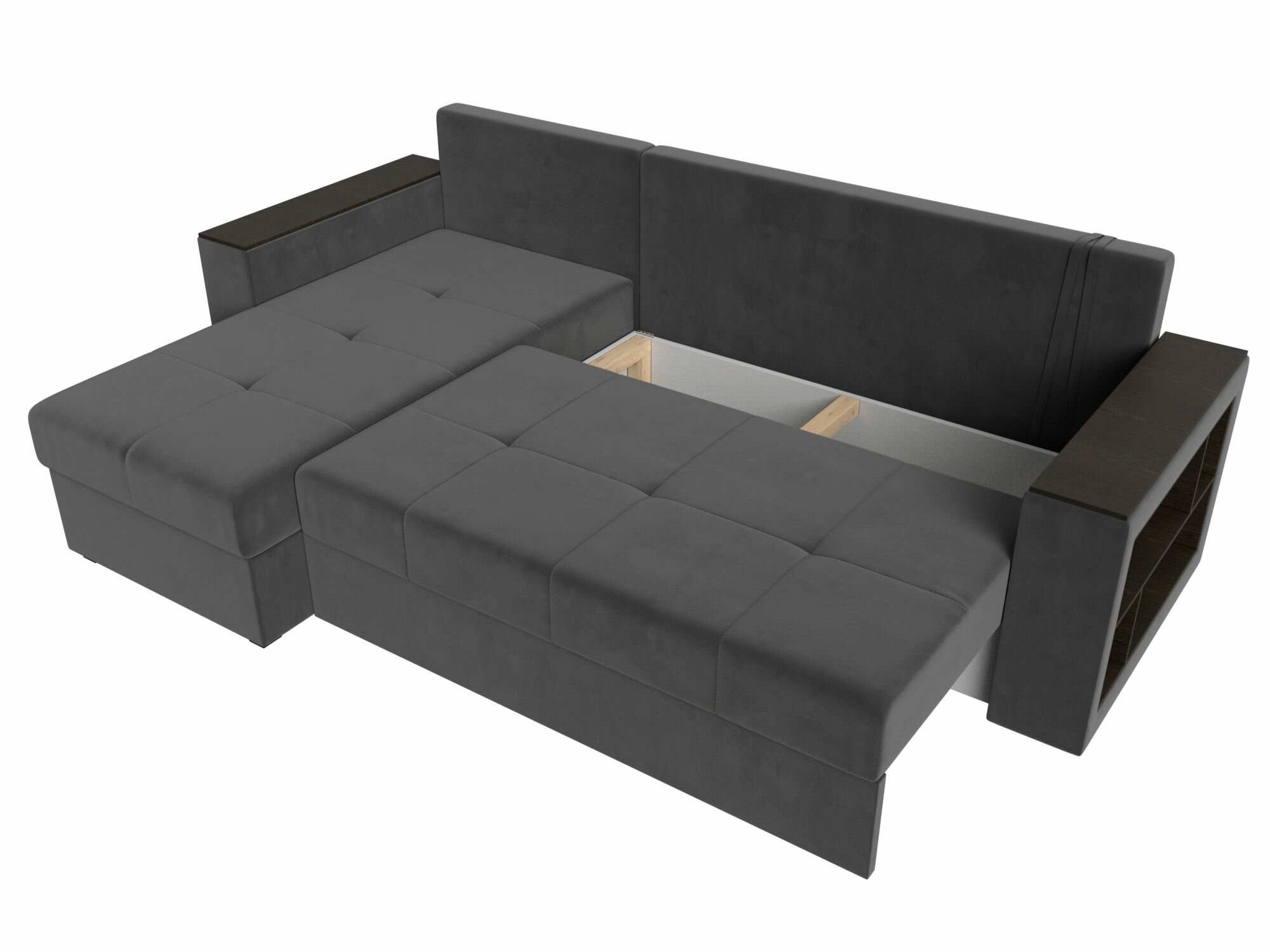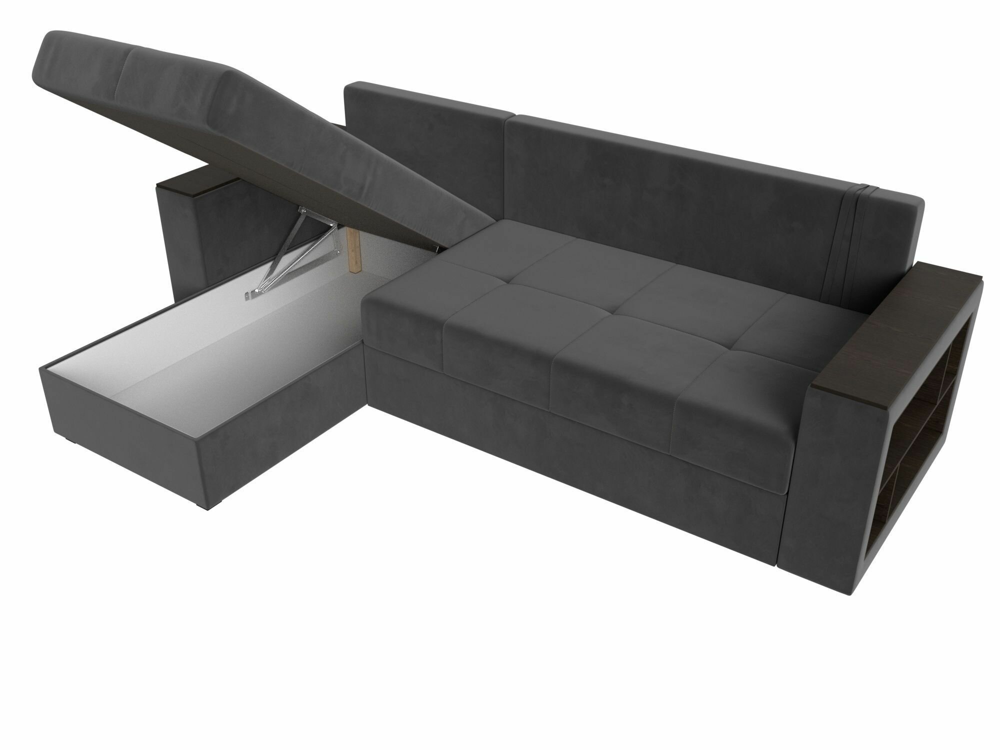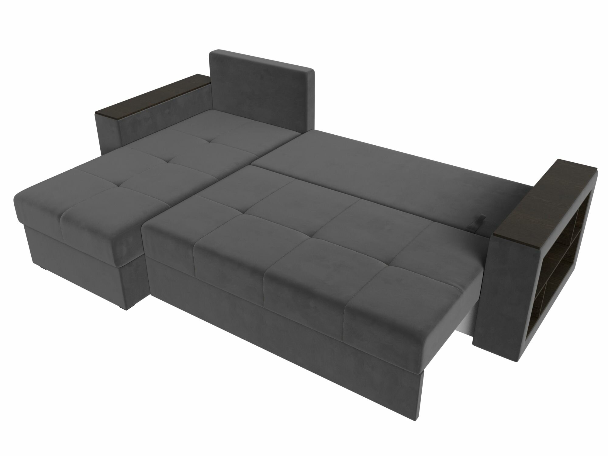 Купить Диван угловой Дубай Лайт левый угол, велюр, механизм еврокнижка, серый, модель 114152L