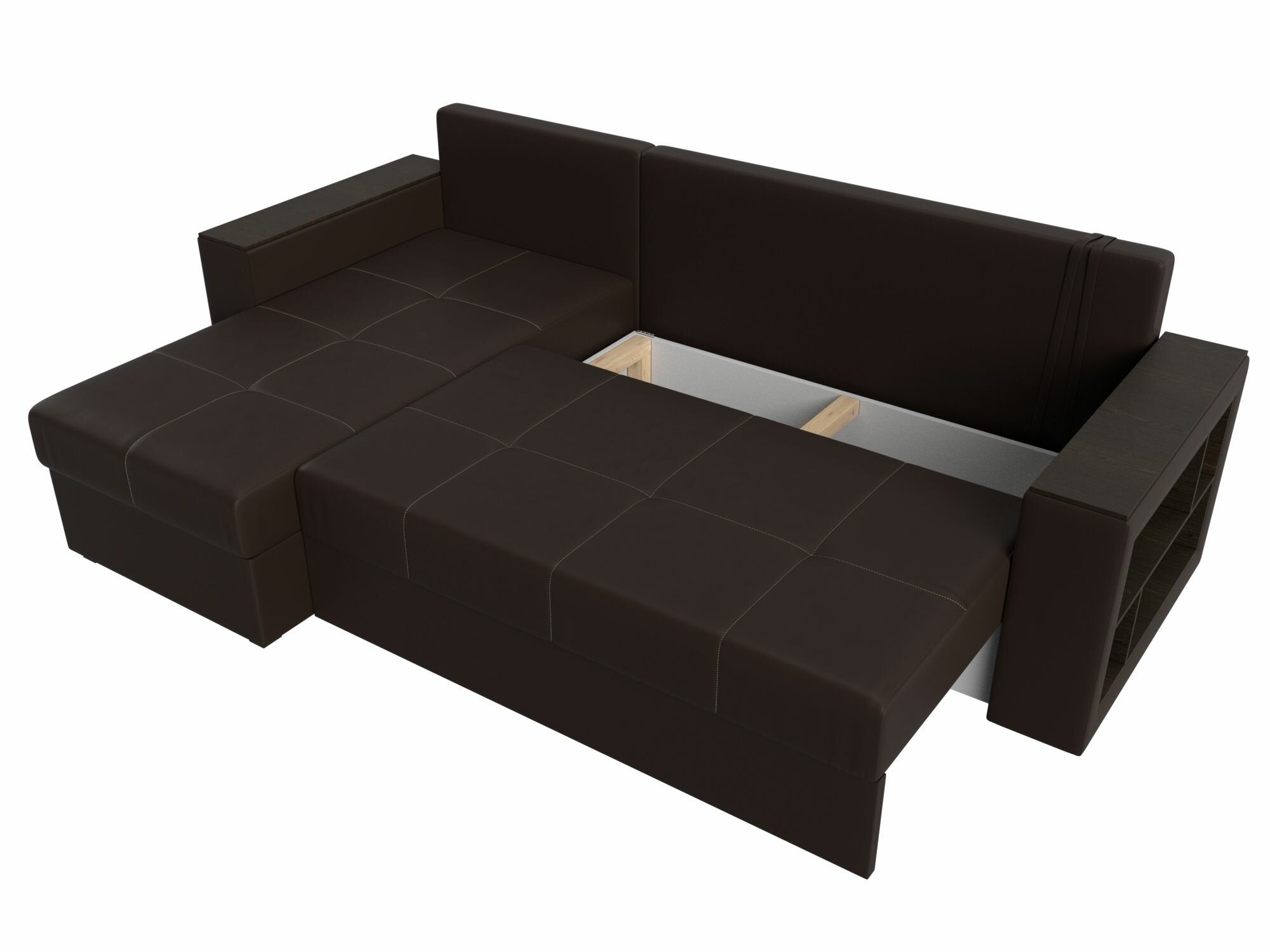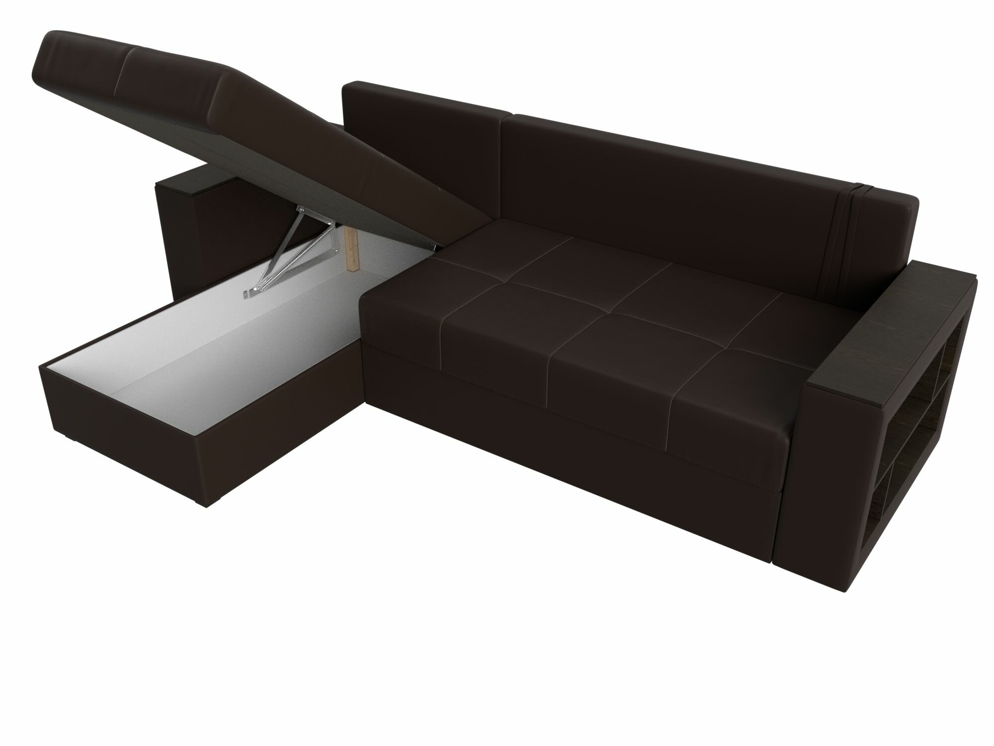 Купить Диван угловой Дубай Лайт левый угол, экокожа, механизм еврокнижка, коричневый, модель 114200L