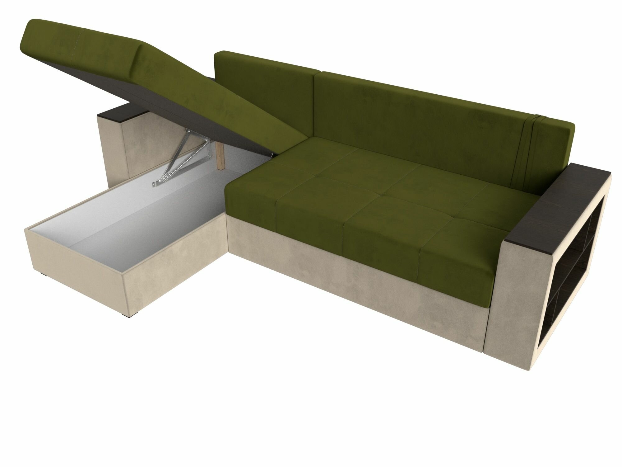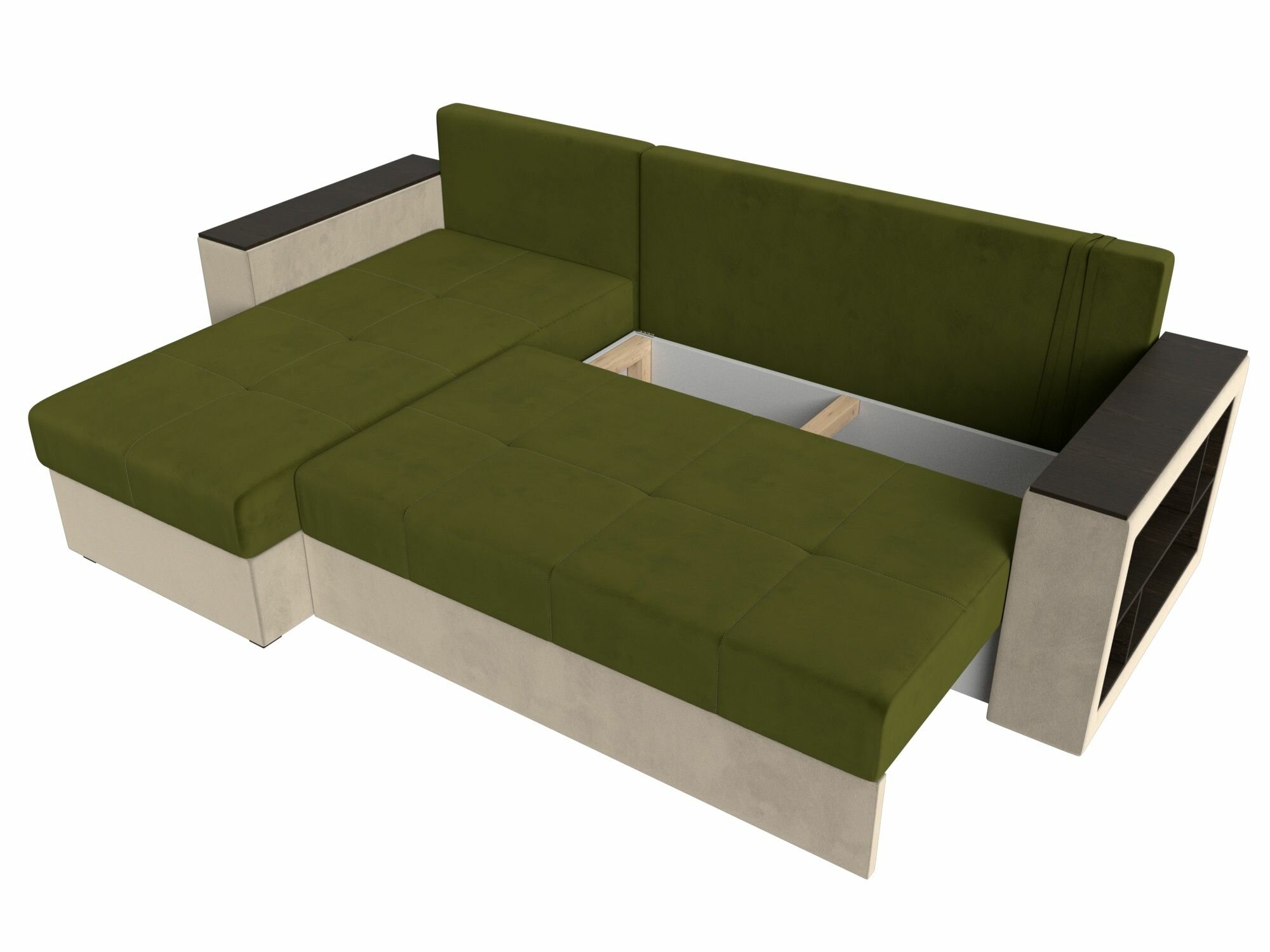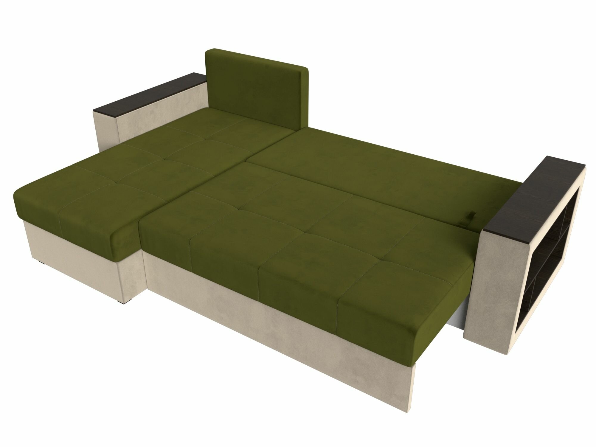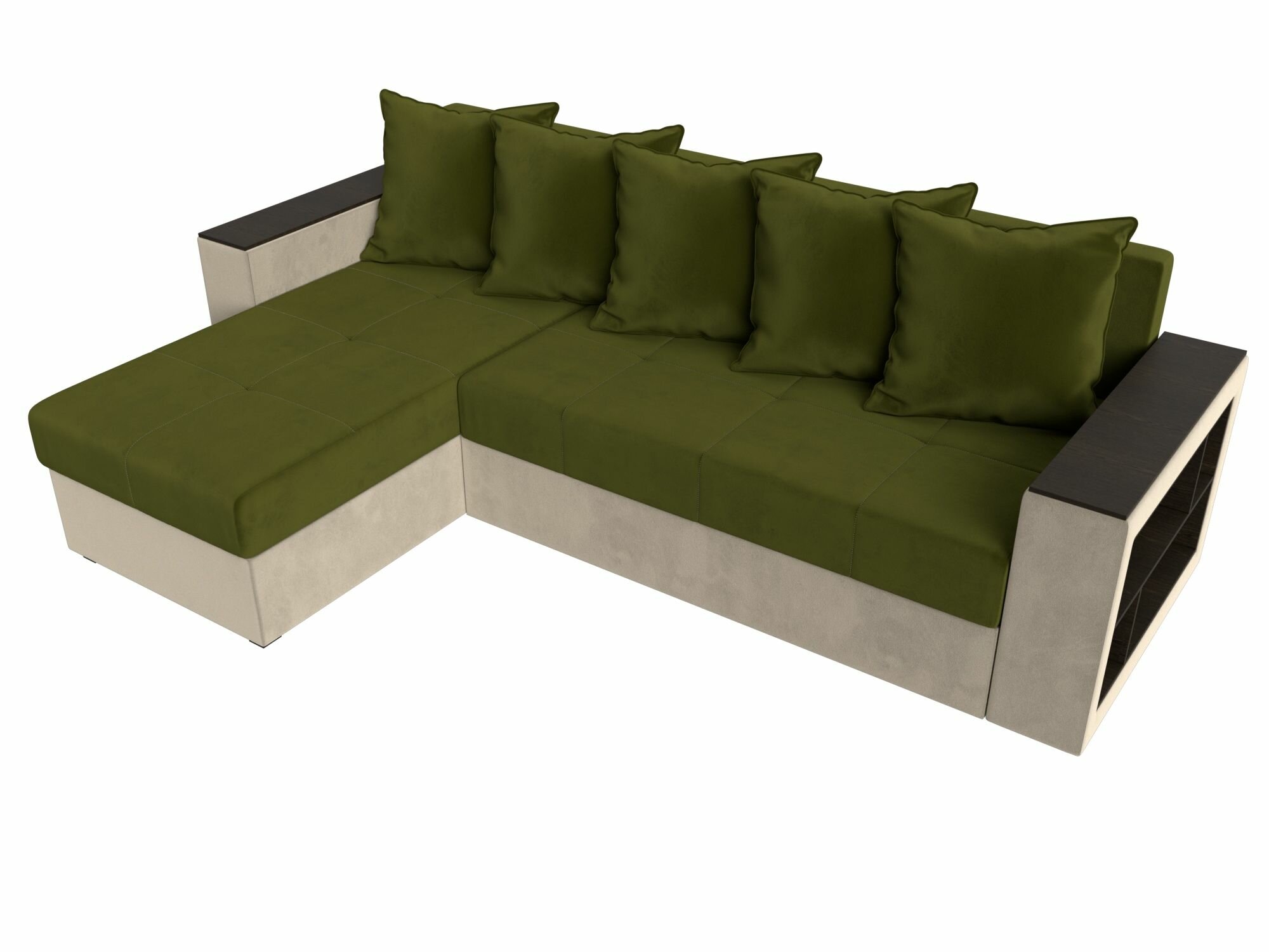 Диван угловой Дубай Лайт левый угол, микровельвет, механизм еврокнижка, зеленый, модель 114186L