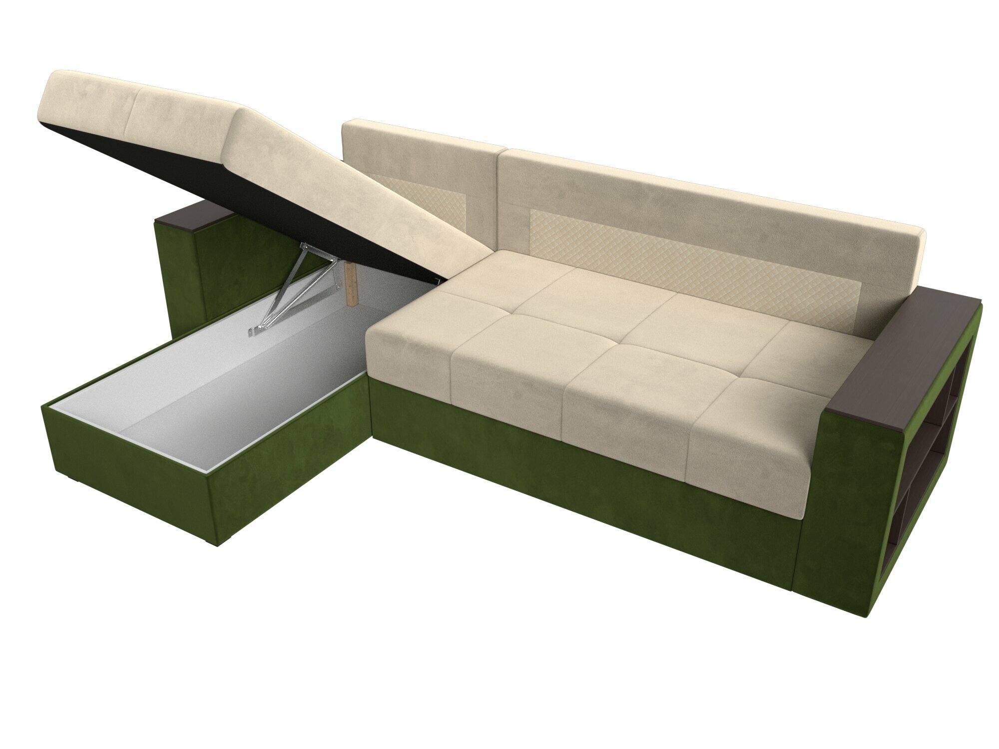 Диван угловой Дубай Лайт левый угол, микровельвет, механизм еврокнижка, зеленый, модель 114186L