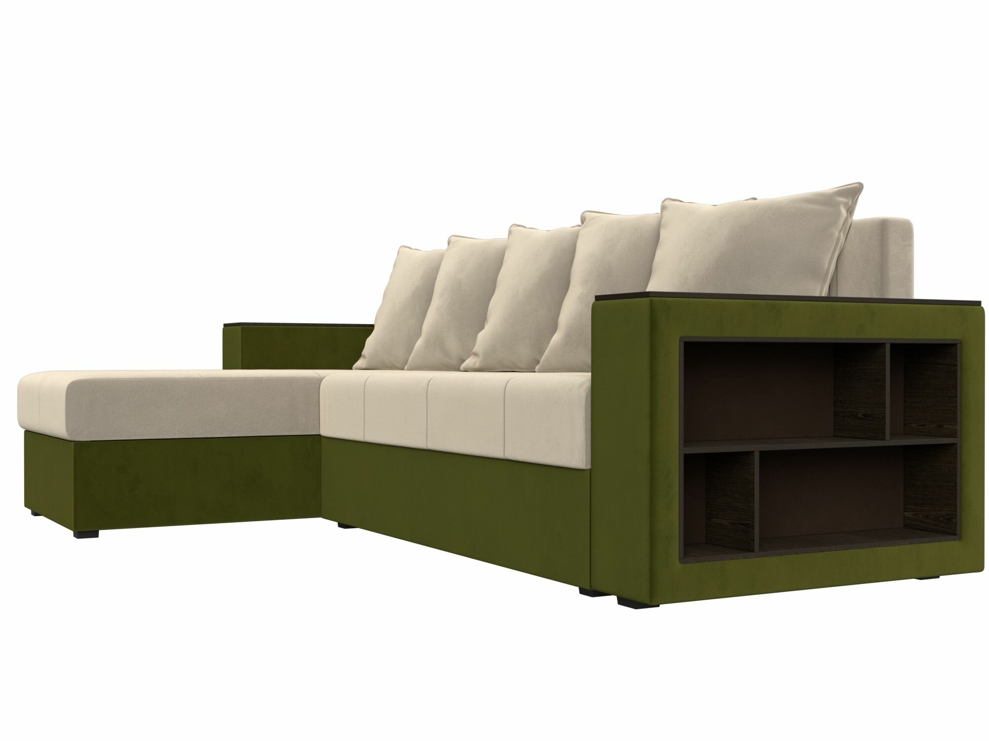 Диван угловой Дубай Лайт левый угол, велюр, механизм еврокнижка, бежевый, модель 114159L