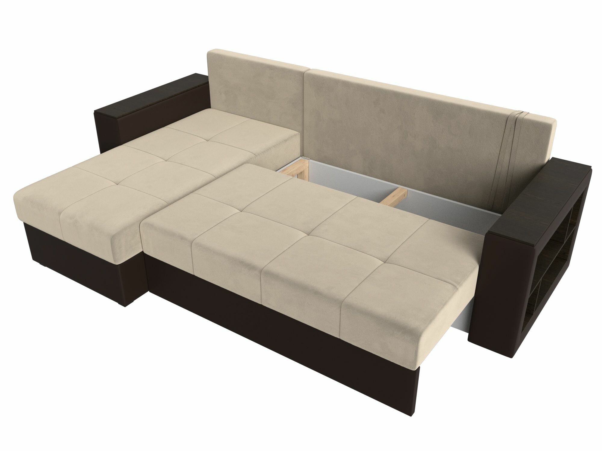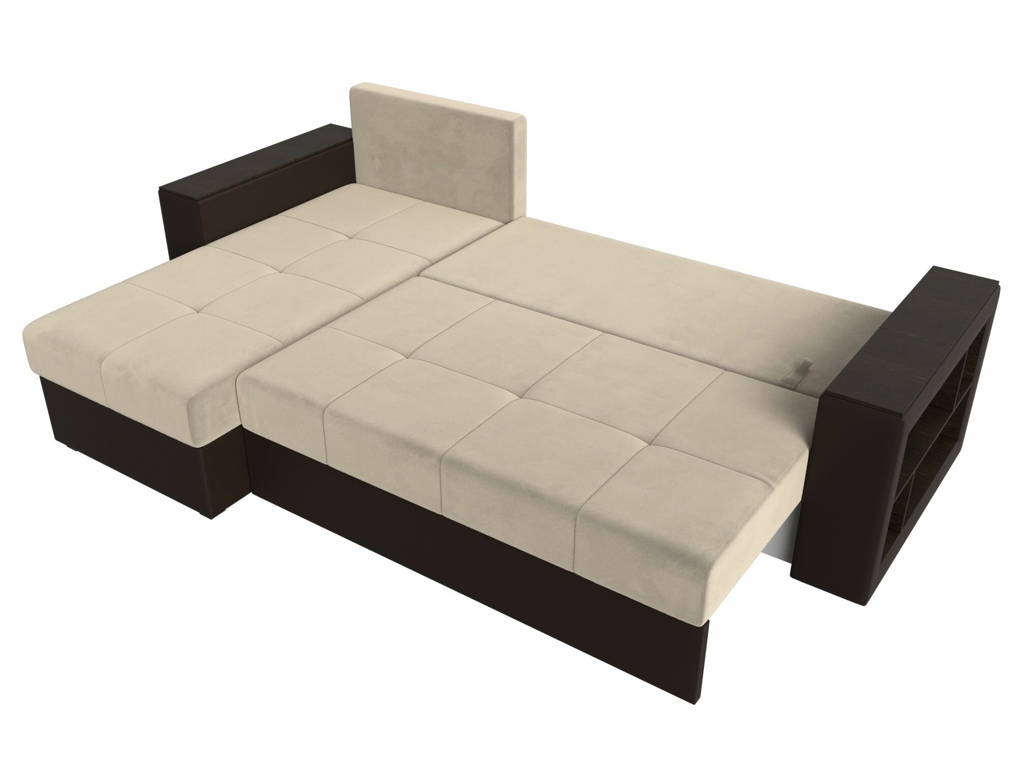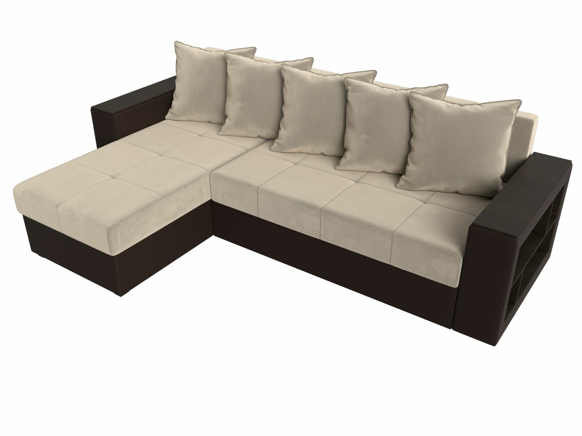 Купить Диван угловой Дубай Лайт левый угол, микровельвет, механизм еврокнижка, бежевый, модель 114182L