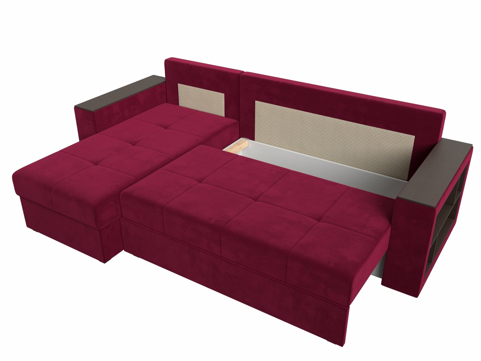 Диван угловой Дубай Лайт левый угол, микровельвет, механизм еврокнижка, Бордовый, модель 114179L
