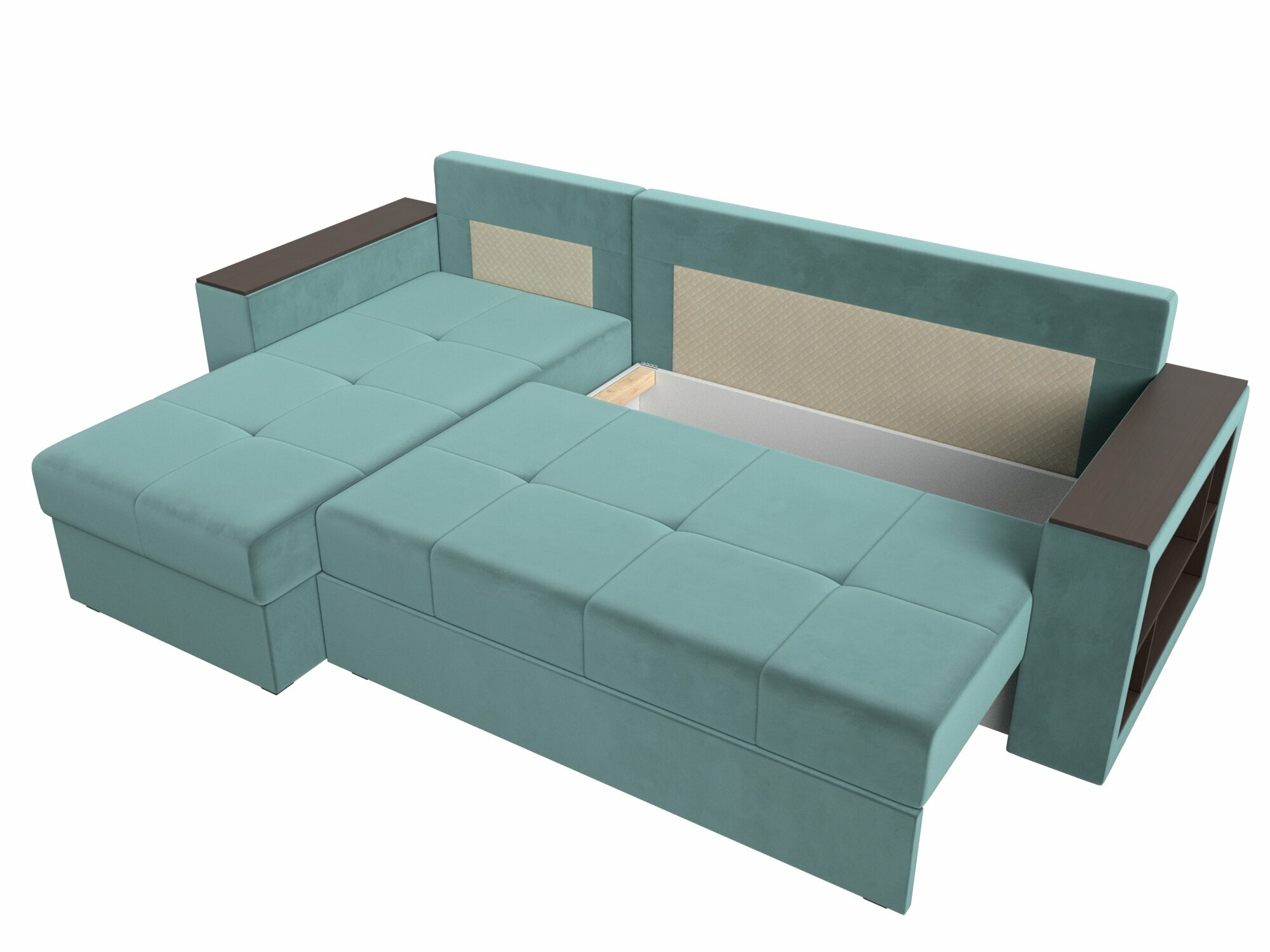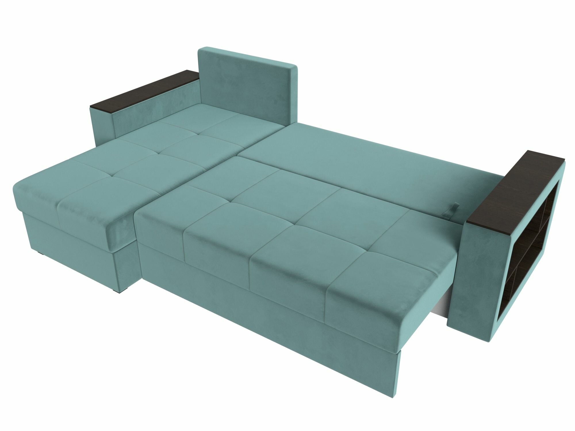 Диван угловой Дубай Лайт левый угол, велюр, механизм еврокнижка, бирюзовый, модель 114157L