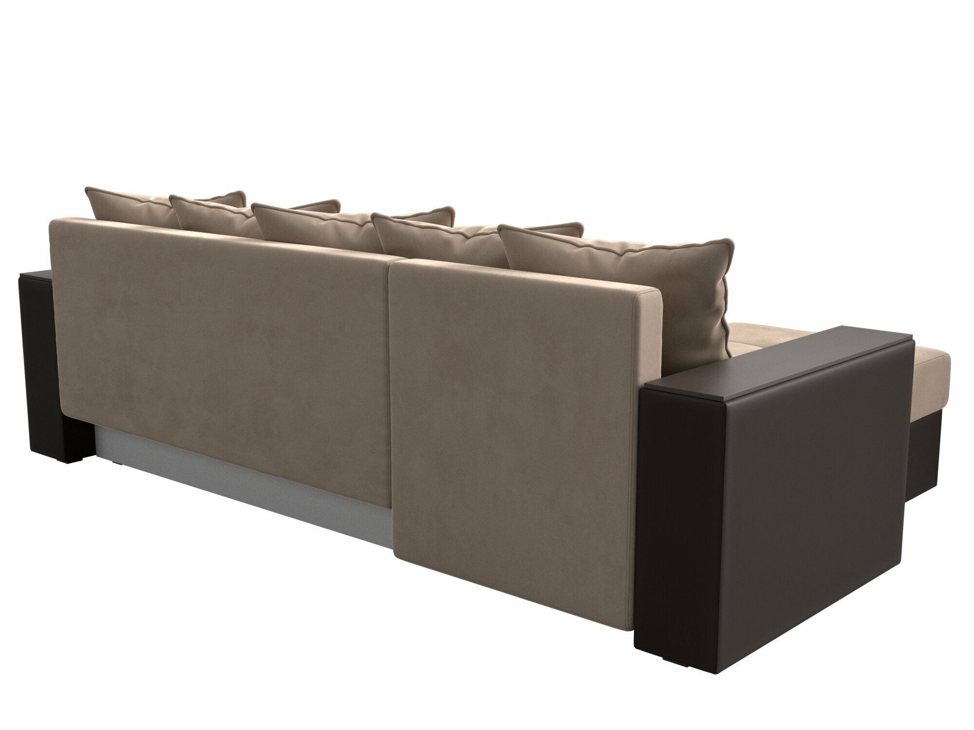Диван угловой Дубай Лайт левый угол, микровельвет, механизм еврокнижка, коричневый, модель 114173L