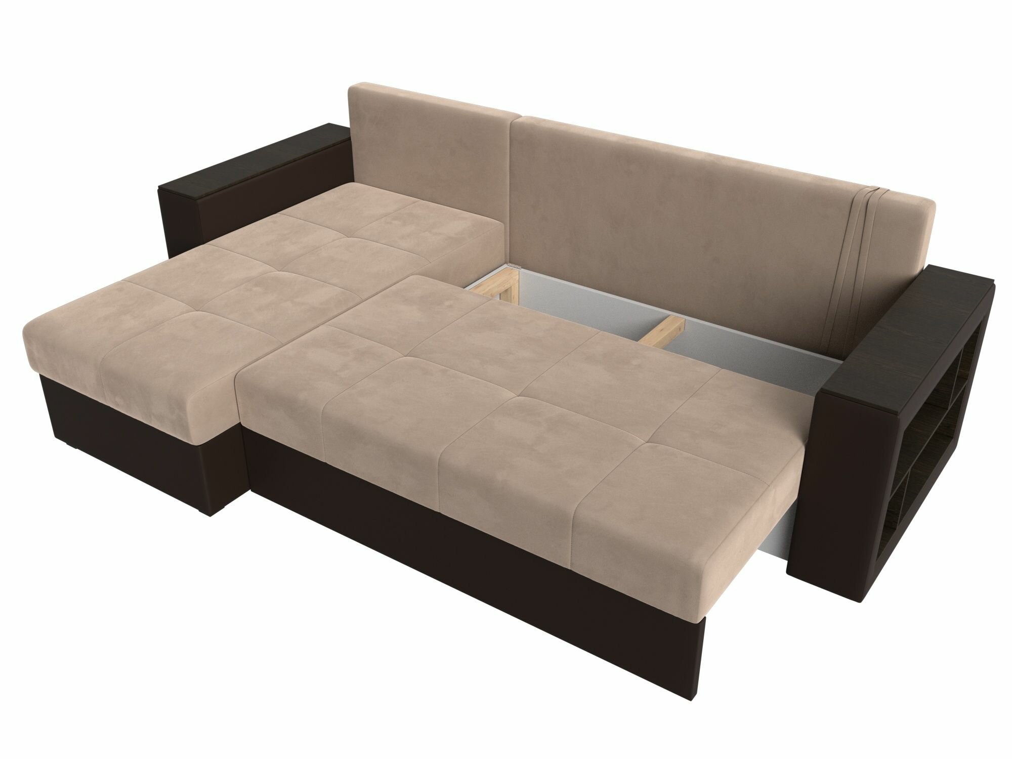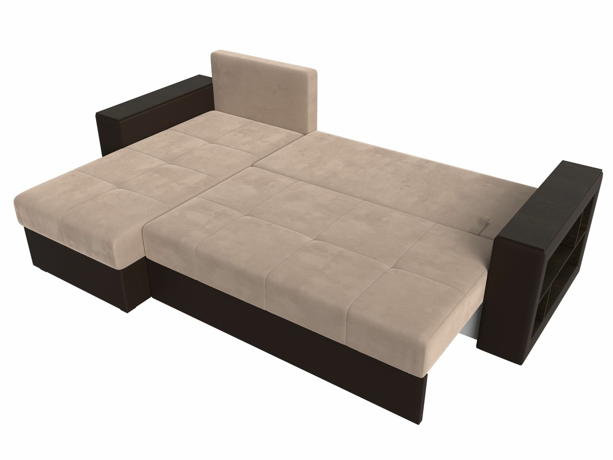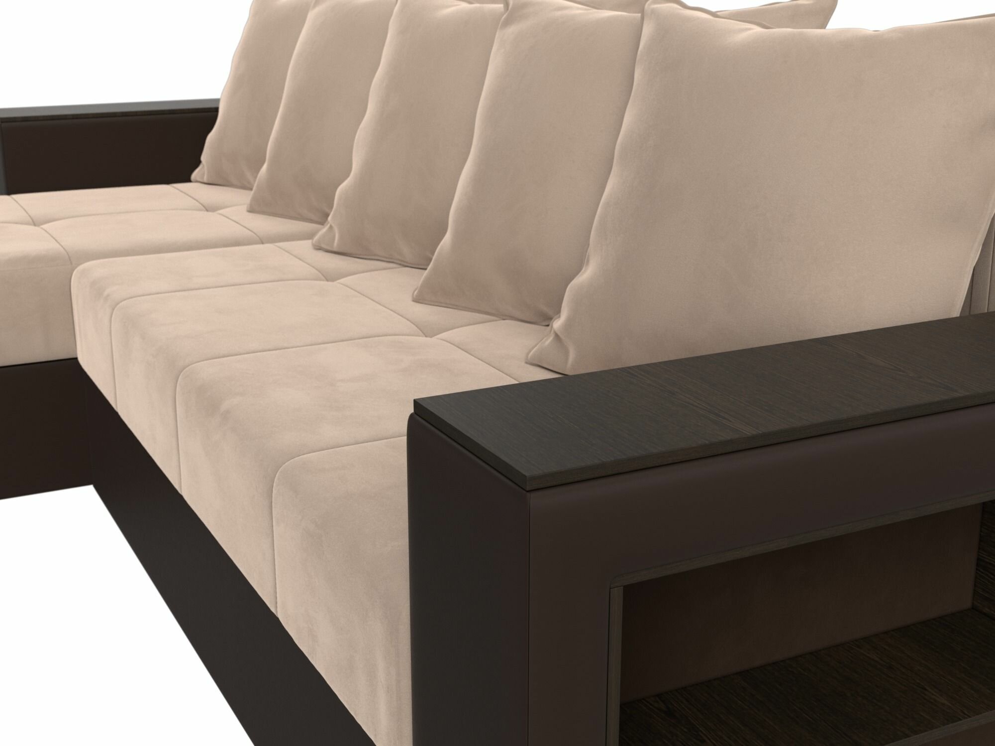 Диван угловой Дубай Лайт левый угол, микровельвет, механизм еврокнижка, бежевый, модель 114178L