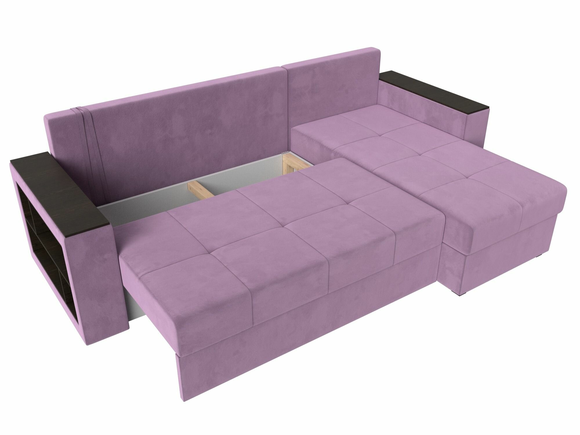 Диван угловой Дубай Лайт левый угол, микровельвет, механизм еврокнижка, Сиреневый, модель 114176L