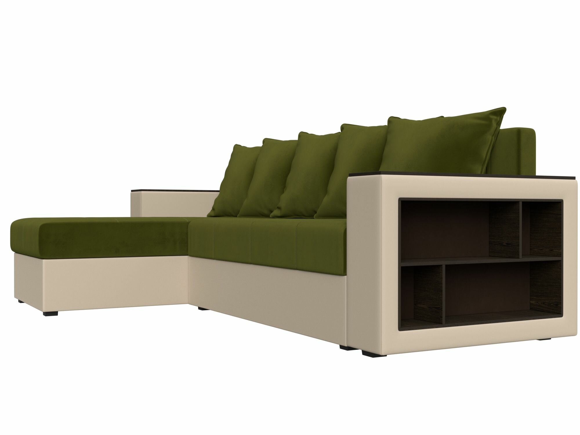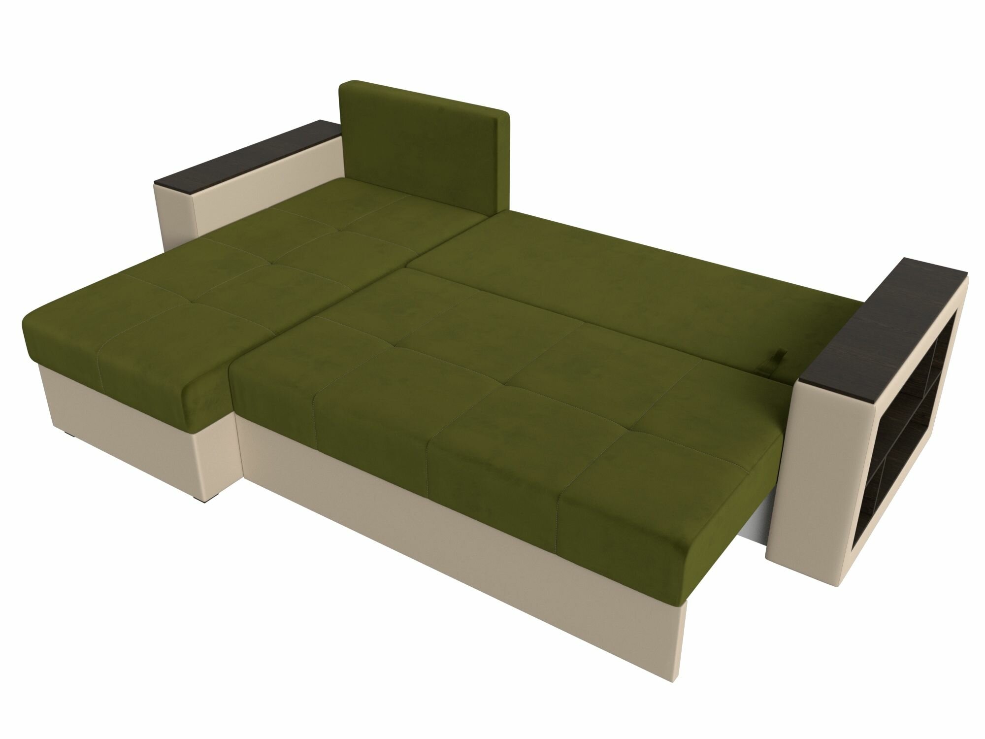 Диван угловой Дубай Лайт левый угол, микровельвет, механизм еврокнижка, зеленый, модель 114177L