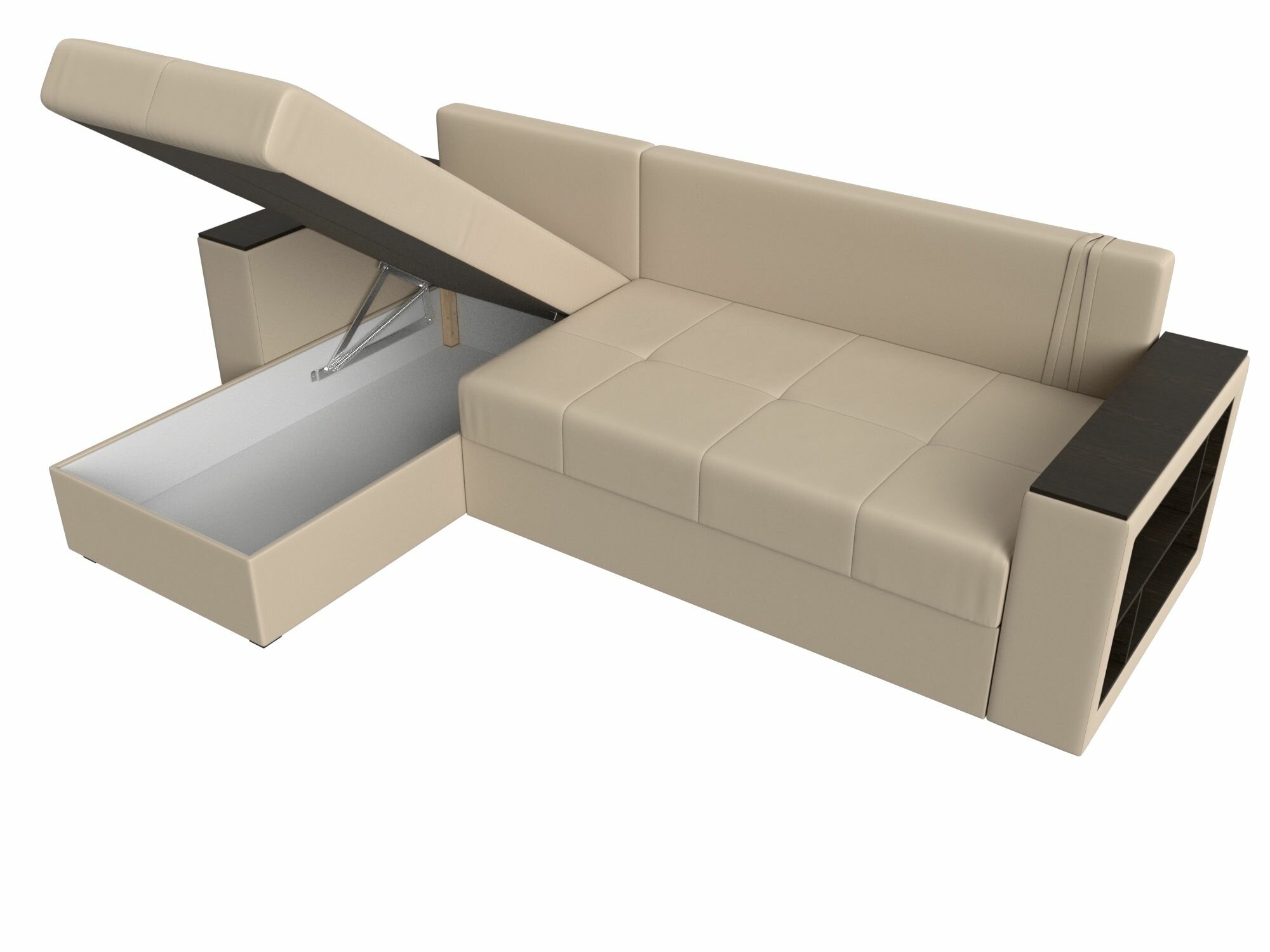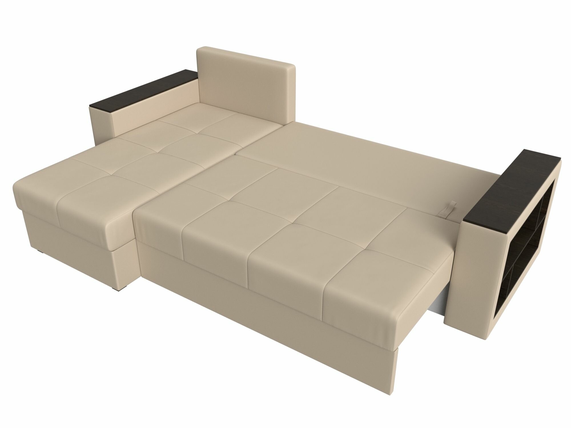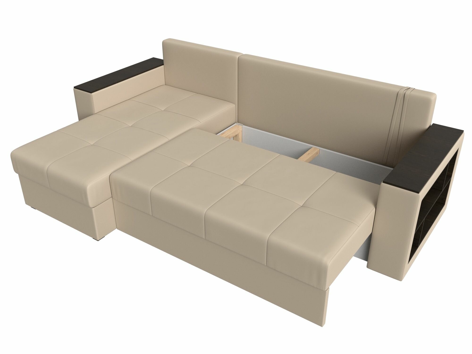 Купить Диван угловой Дубай Лайт левый угол, экокожа, механизм еврокнижка, бежевый, модель 114198L