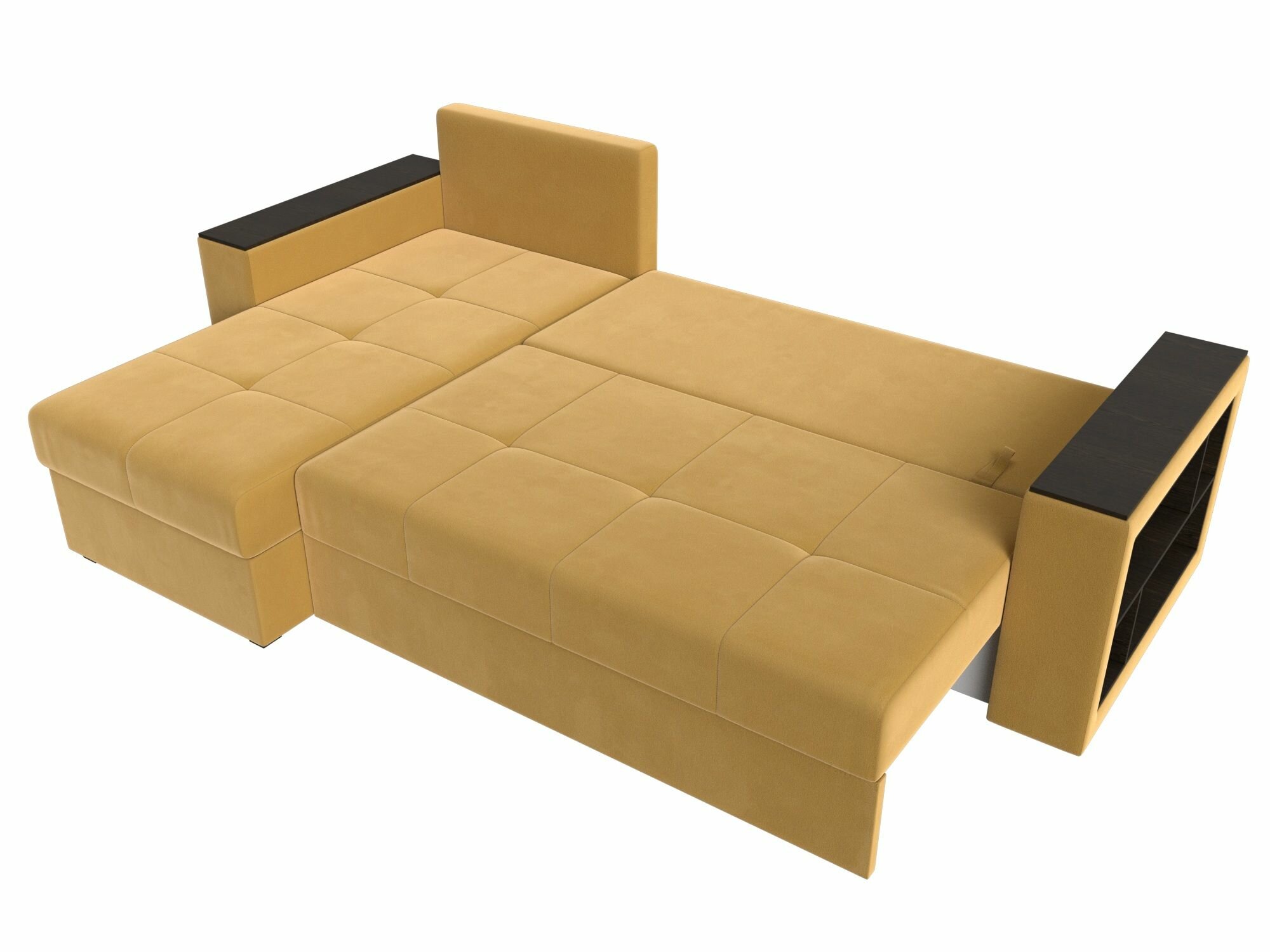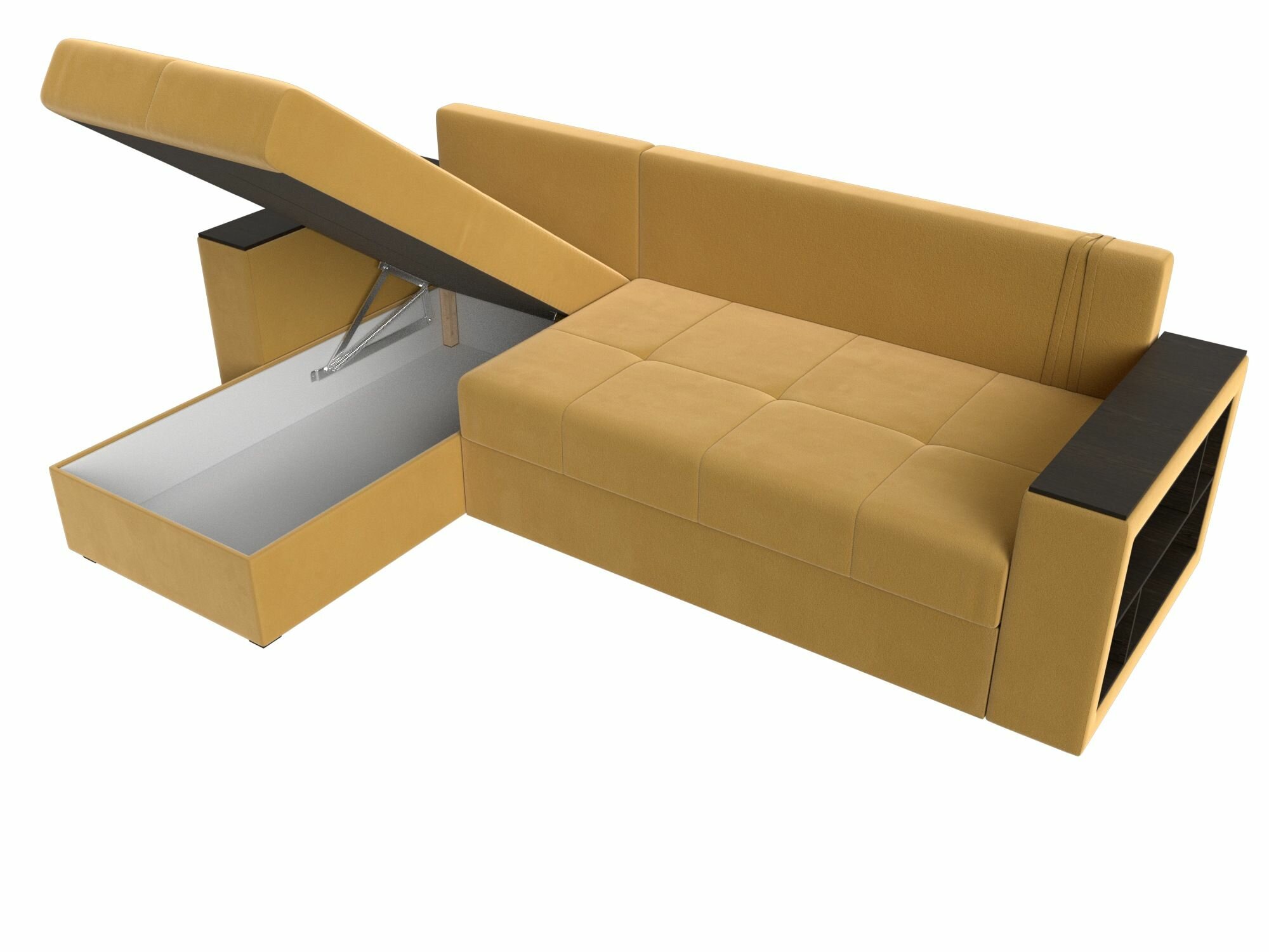 Диван угловой Дубай Лайт левый угол, микровельвет, механизм еврокнижка, желтый, модель 114174L