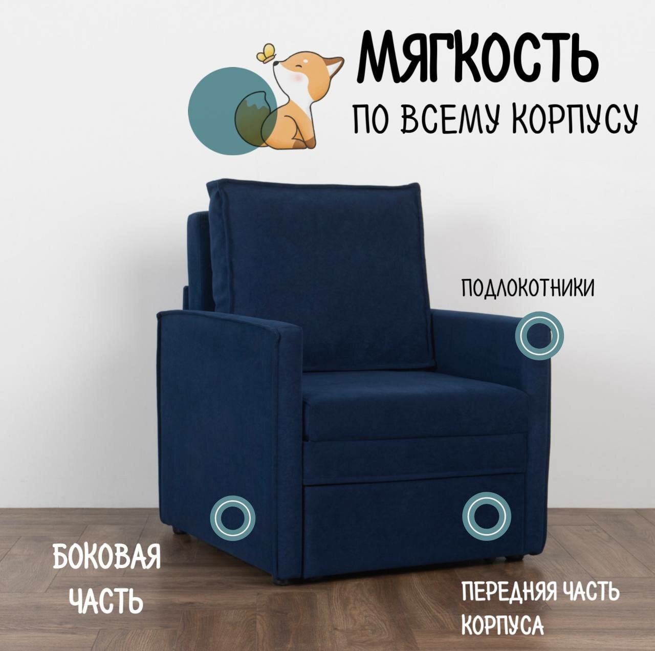 Кресло-кровать Куба, обивка антикоготь, 80х77х92, спальное место 192х60 темно-синий №13 интересное: