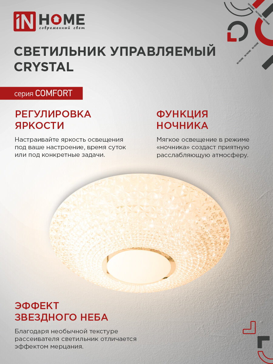 СохранитьСветильник светодиодный IN HOME COMFORT CRYSTAL, 75 Вт, кол-во ламп: 1 шт., цвет: белый 4690612034782 интересное: