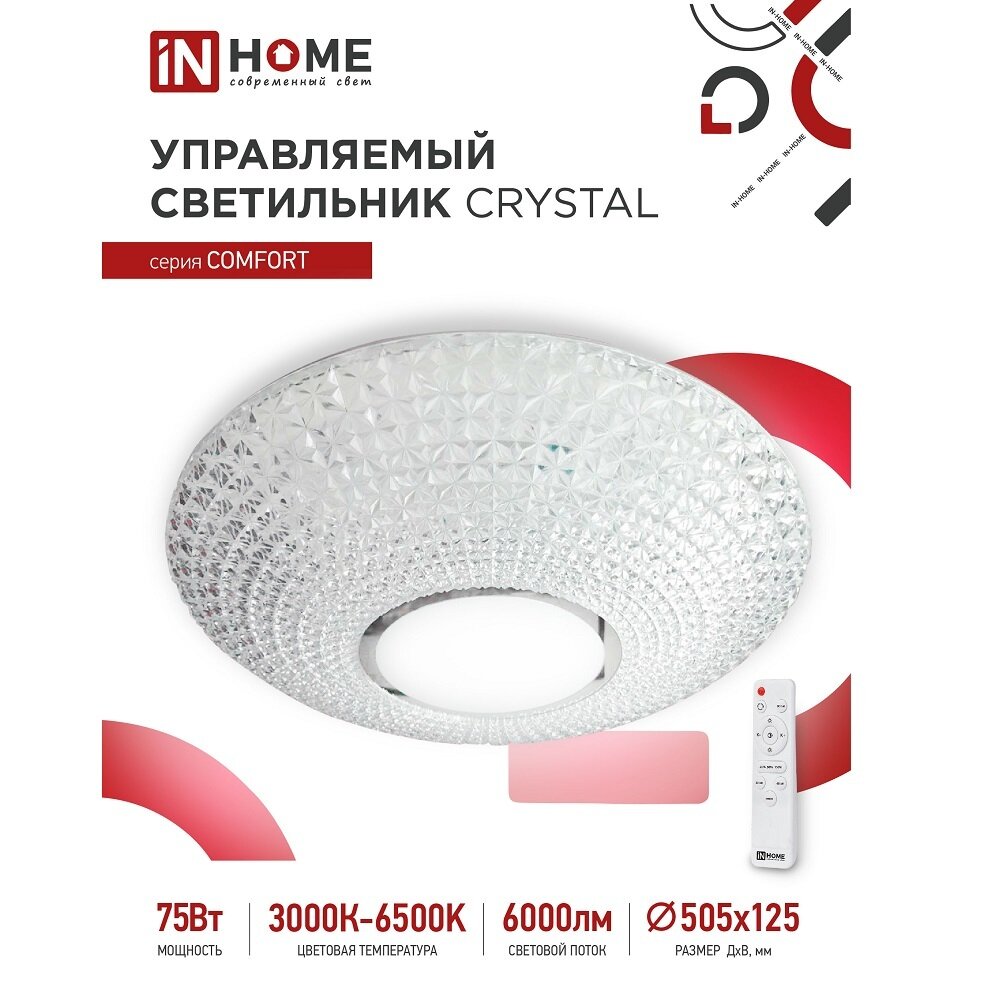 Купить Светильник светодиодный IN HOME COMFORT CRYSTAL, 75 Вт, кол-во ламп: 1 шт., цвет: белый 4690612034782